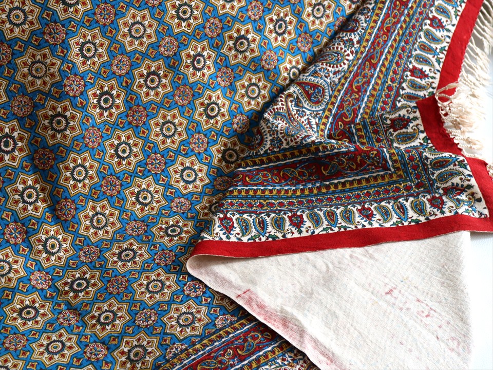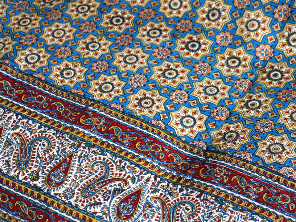 Key:コットン 染色 ブロックプリント 木版 捺染 伝統工芸 ペルシャブルー ペイズリー フリークロス マルチカバー ベッドスプレッド ベッドカバー ソファカバー カーテン タペストリー ファブリック インテリアファブリック クラフト インテリア ペルシャ ペルセポリス イラン 中東 シルクロード アジアン エスニック 200cmサイズ