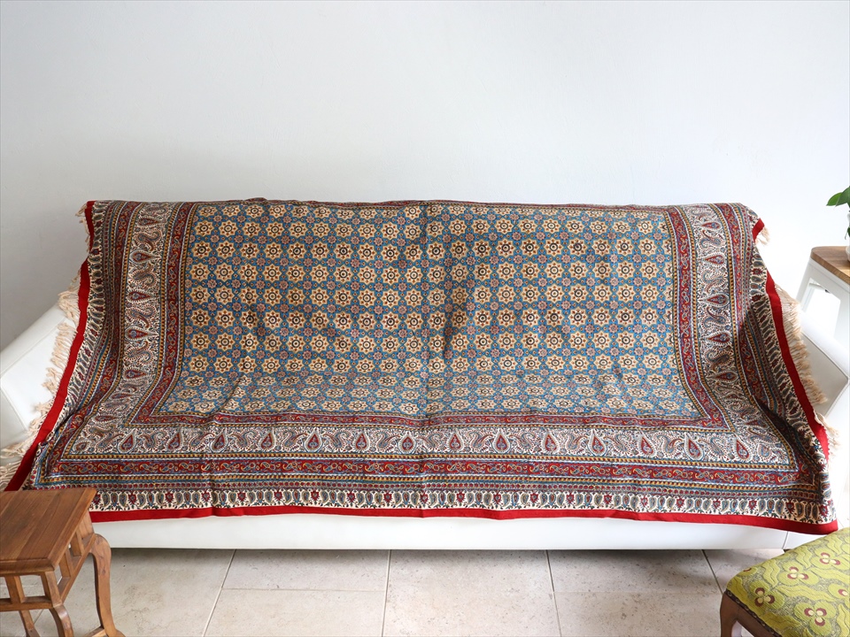 【15%OFF】ペルシャ更紗 イラン手染め布 195x131cm アンティークデザイン テーブルクロス ソファカバー