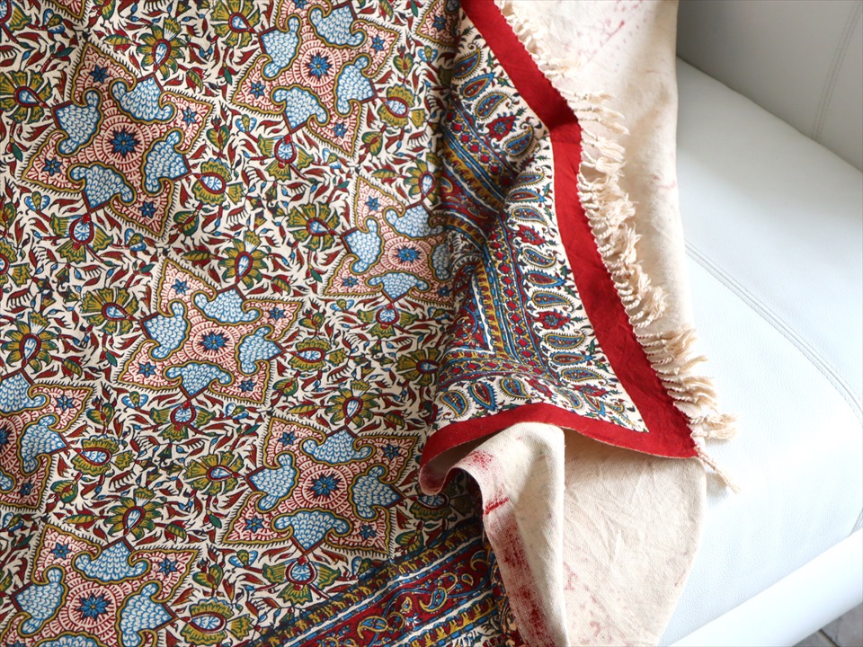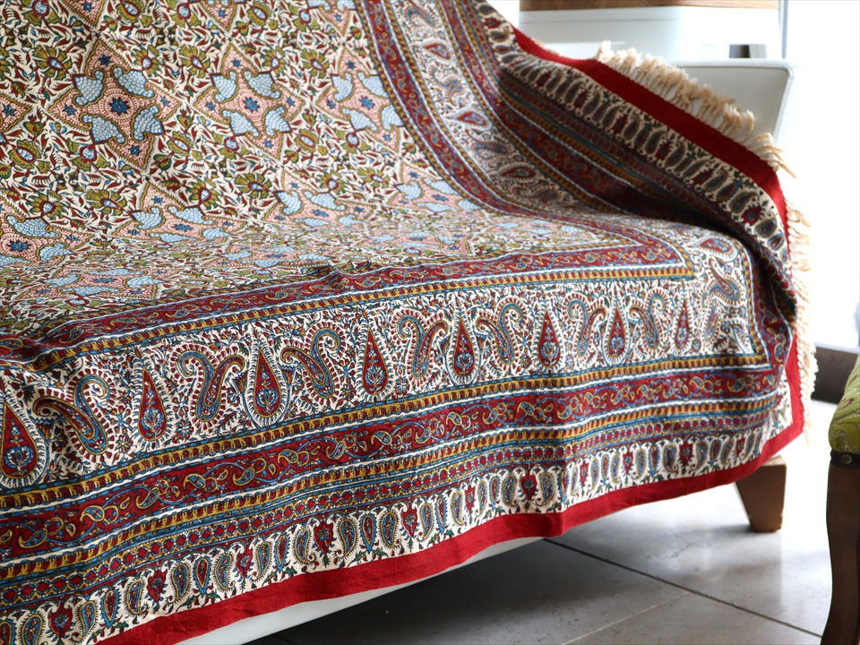 イランの古都イスファハン伝統のペルシャ更紗「ガラムカール」。テーブルクロスやソファカバーなどマルチに使える布です。