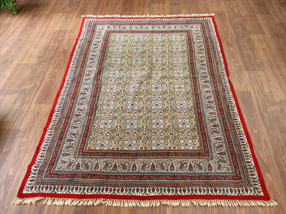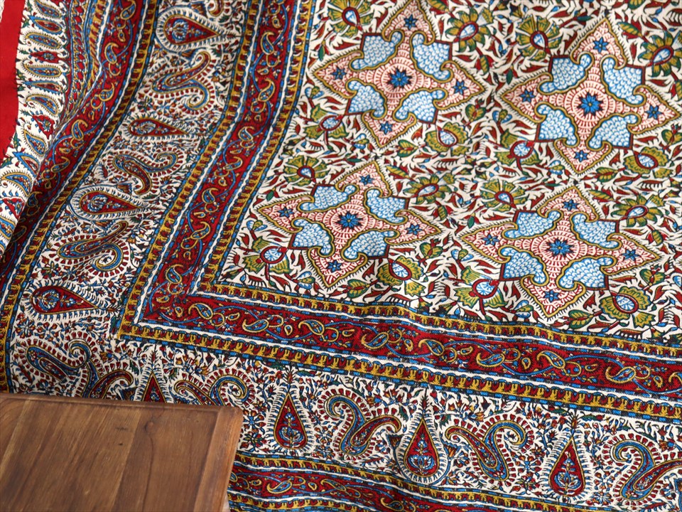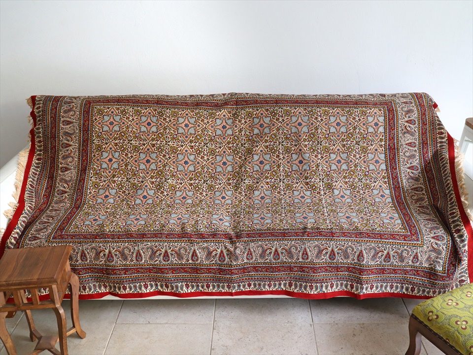【15%OFF】ペルシャ更紗 イラン手染め布 196x132cm アンティークデザイン テーブルクロス ソファカバー