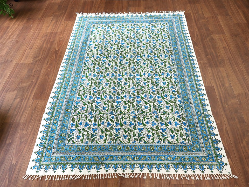 Key:コットン 染色 ブロックプリント 木版 捺染 伝統工芸 ペルシャブルー ペイズリー フリークロス マルチカバー ベッドスプレッド ベッドカバー ソファカバー カーテン タペストリー ファブリック インテリアファブリック クラフト インテリア ペルシャ ペルセポリス イラン 中東 シルクロード アジアン エスニック 200cmサイズ