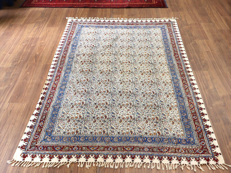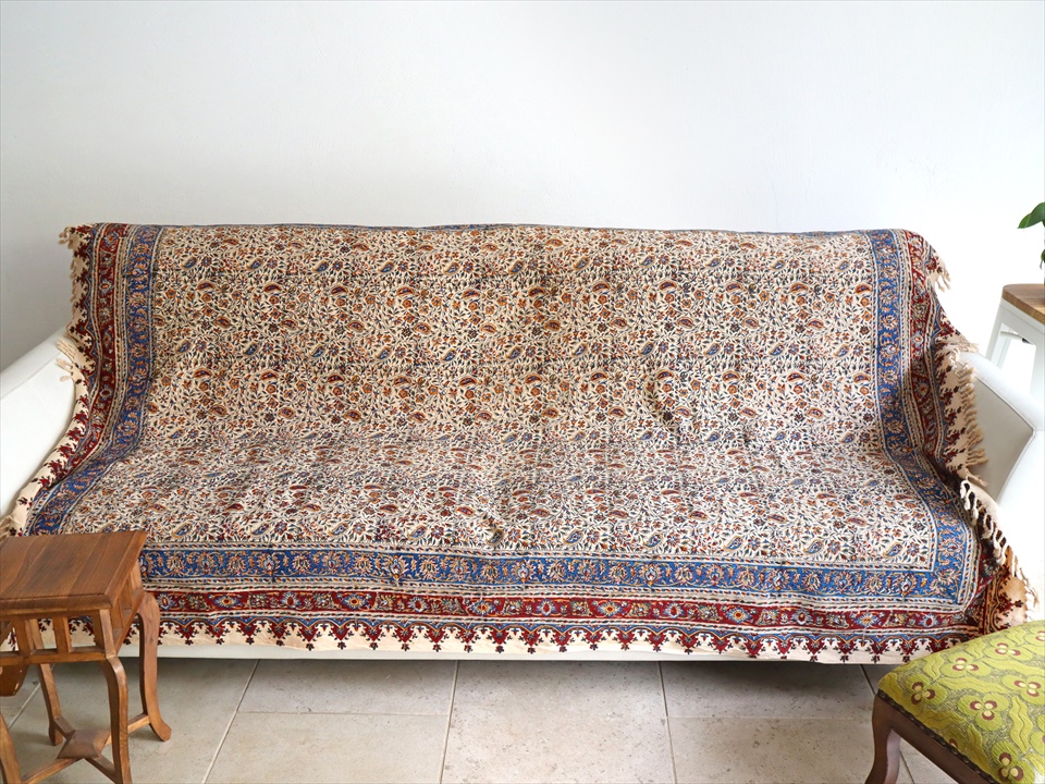 【15%OFF】ペルシャ更紗 イラン手染め布 195x132cm アンバー系 フラワー柄 テーブルクロス ソファカバー