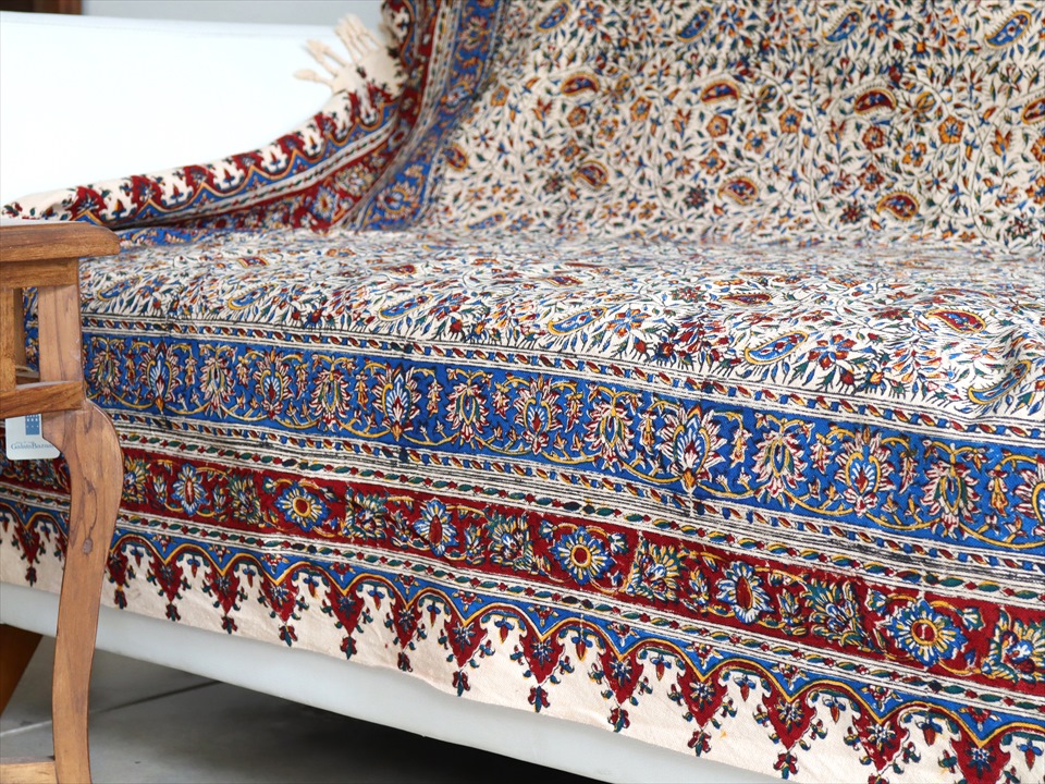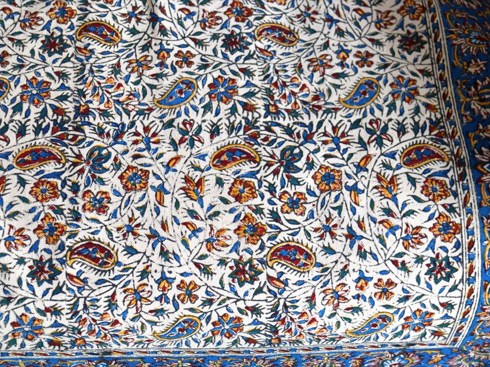 Key:コットン 染色 ブロックプリント 木版 捺染 伝統工芸 ペルシャブルー ペイズリー フリークロス マルチカバー ベッドスプレッド ベッドカバー ソファカバー カーテン タペストリー ファブリック インテリアファブリック クラフト インテリア ペルシャ ペルセポリス イラン 中東 シルクロード アジアン エスニック 200cmサイズ