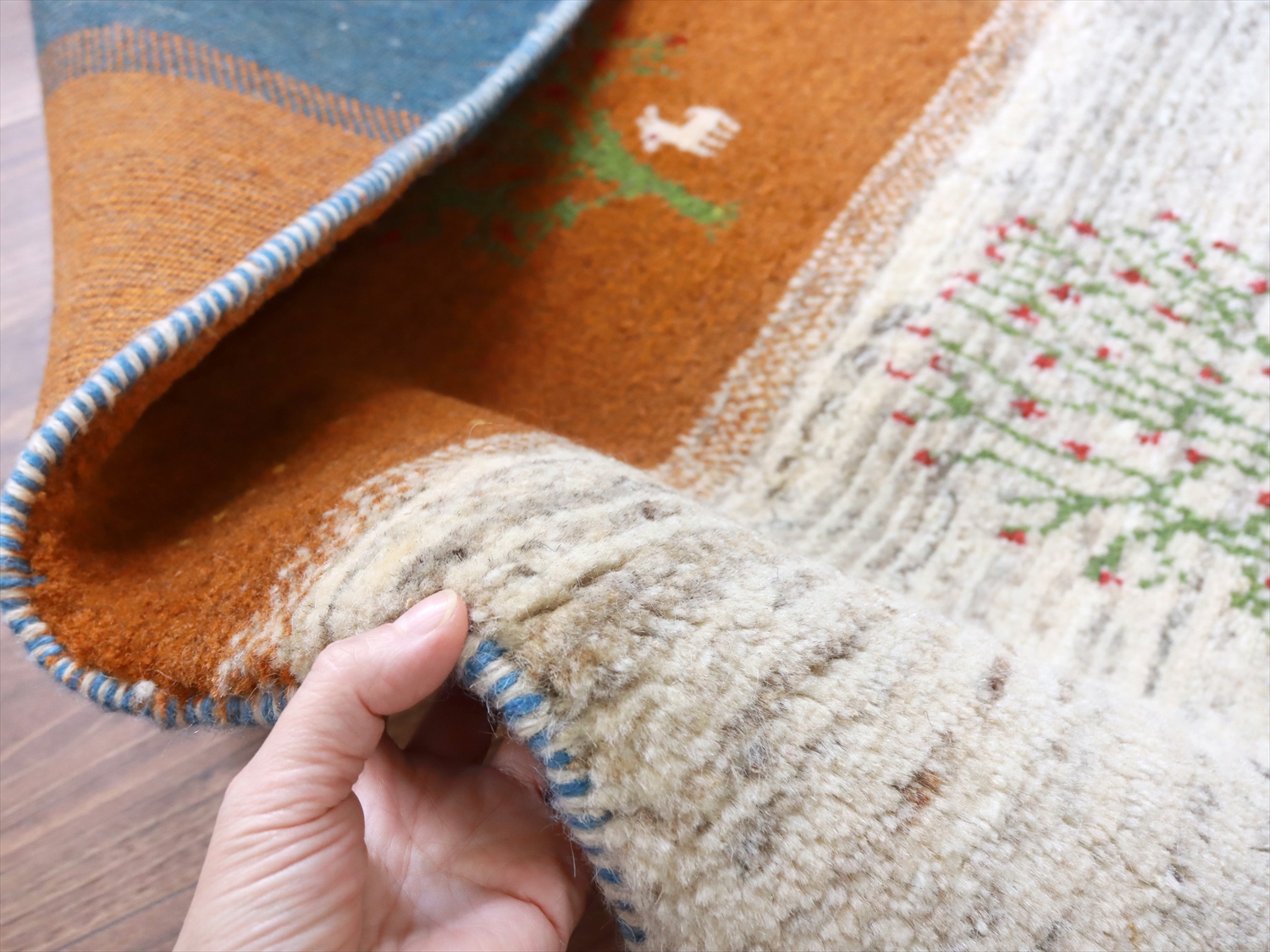 - ギャッベ イラン 手織りラグ 120x80cm Gabbeh Nomad 花をつけた生命の木の風景