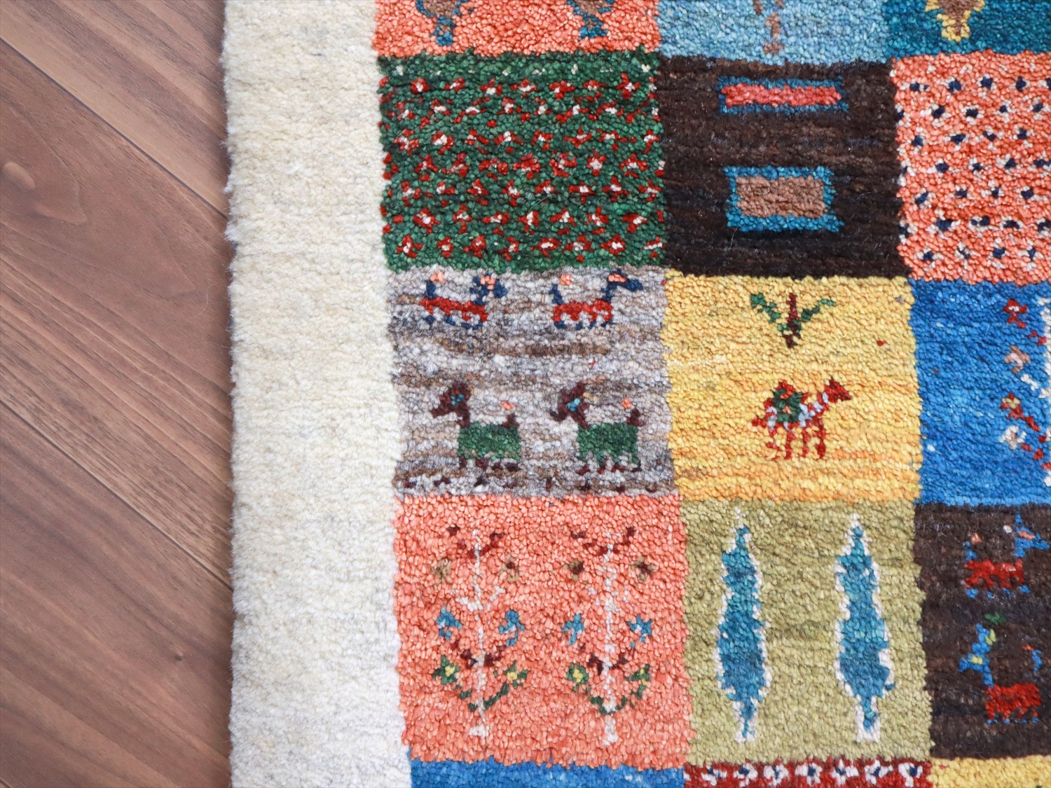 ギャッベ イラン 手織りラグ 120x85cm Gabbeh Nomad カラフルなモザイクのようなタイルデザイン