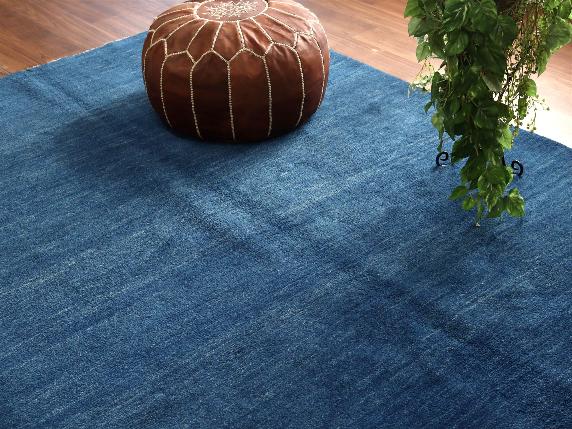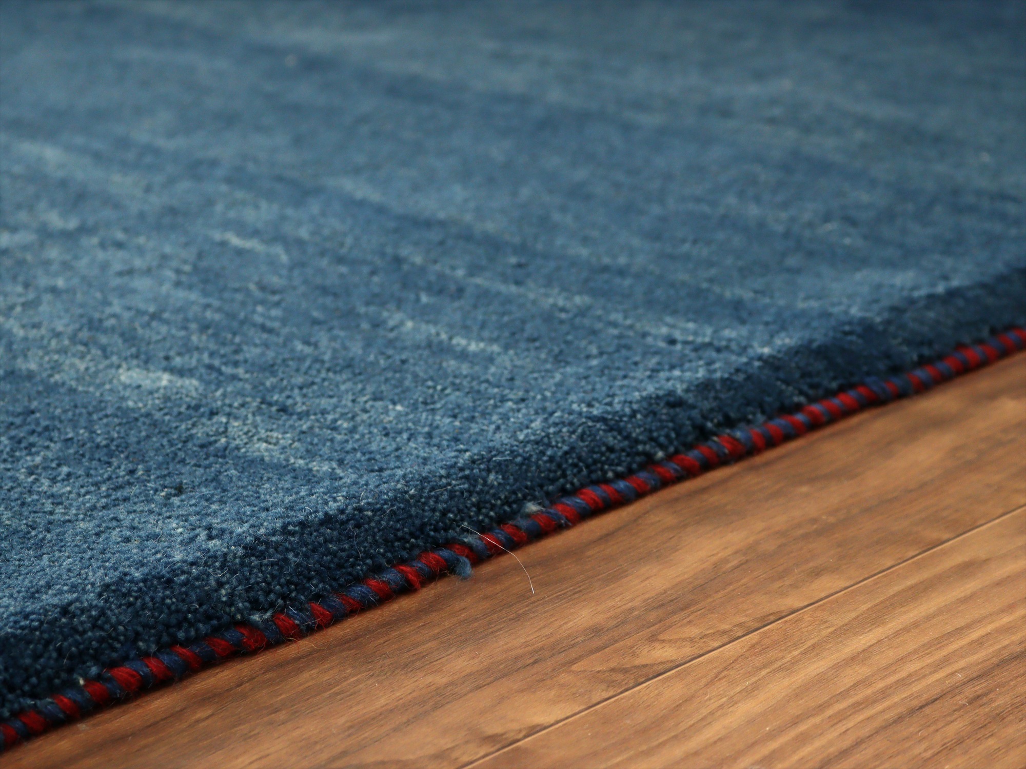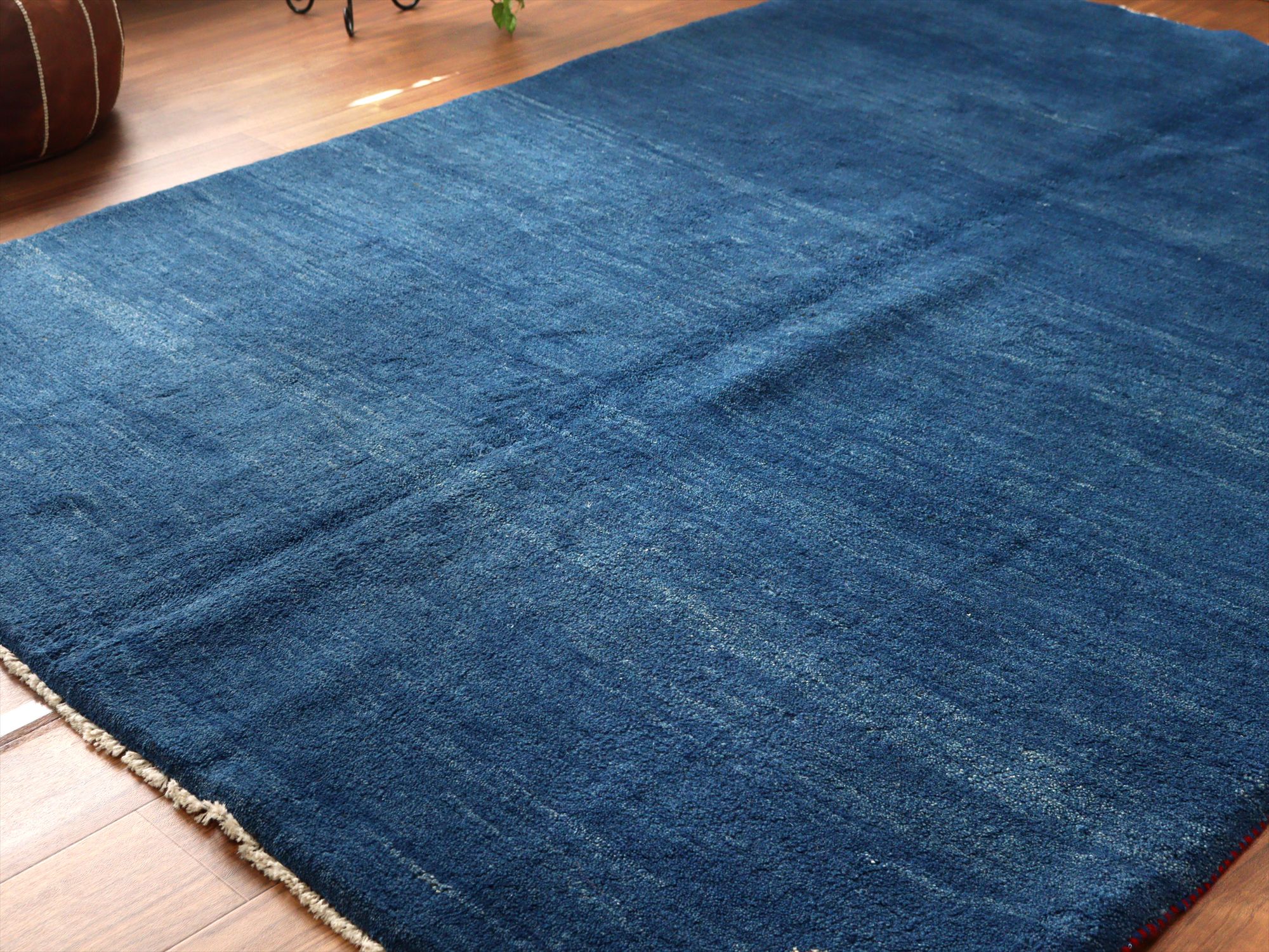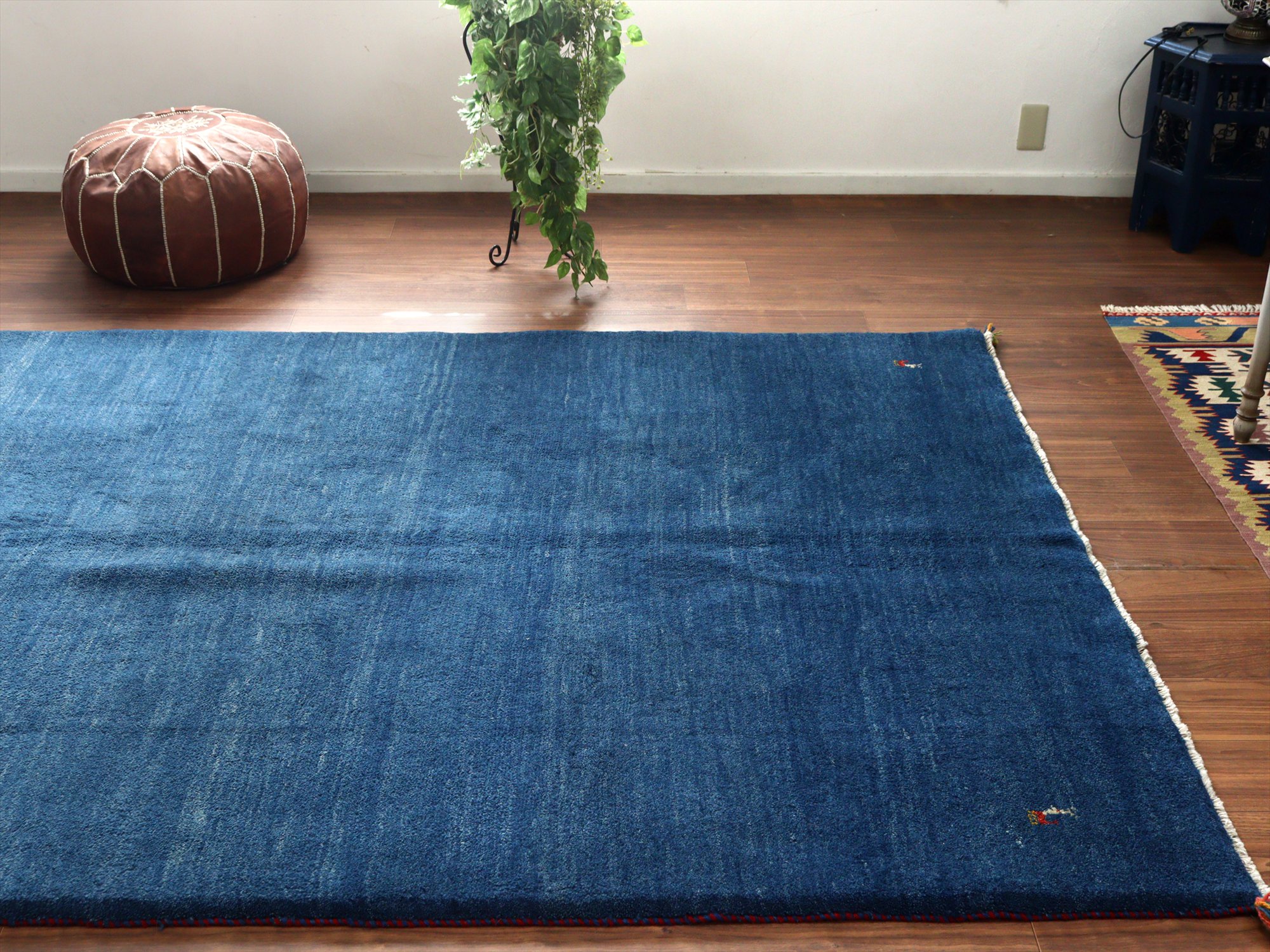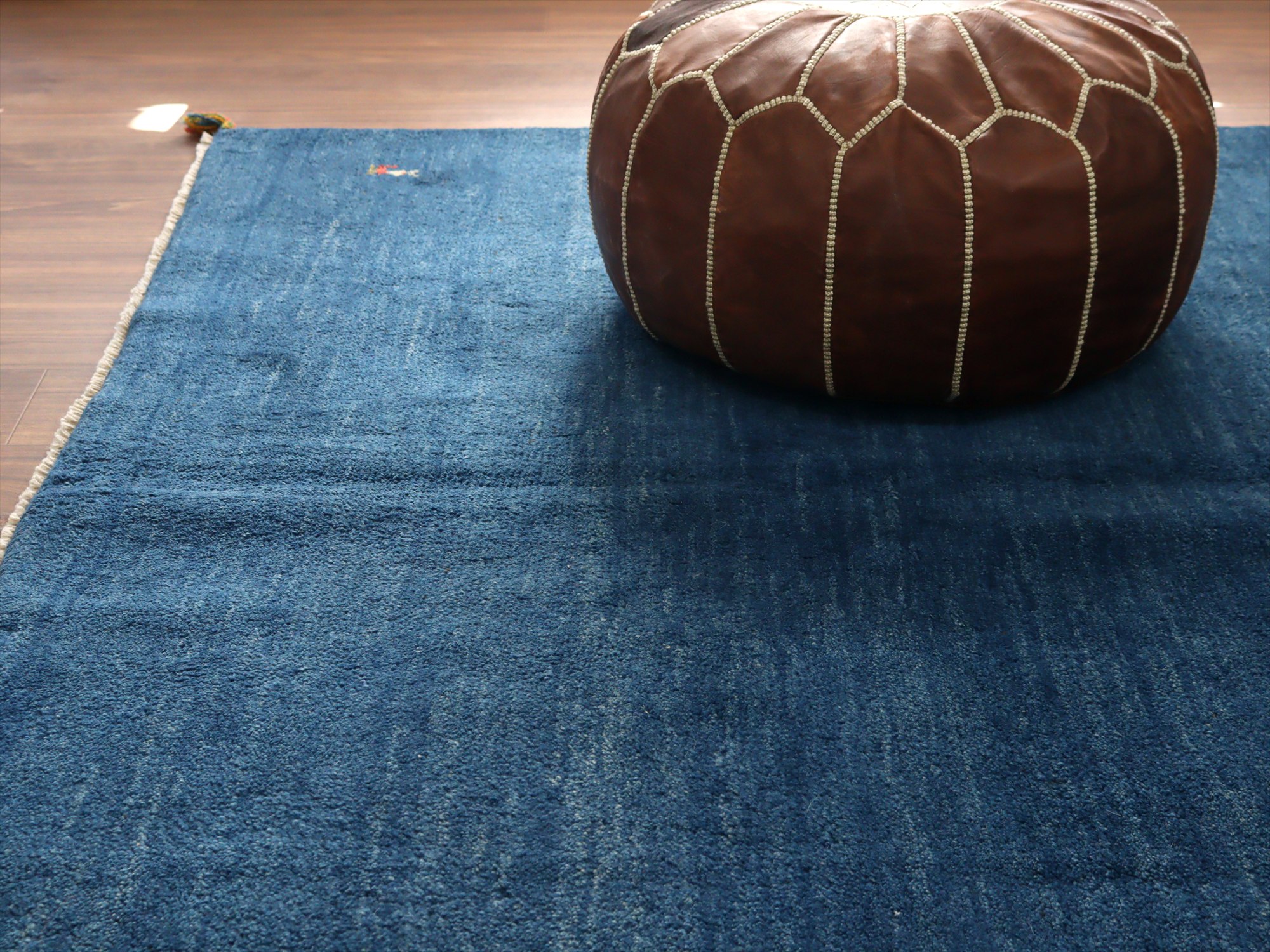 ブルーのグラデーションギャッベ。シンプルなデザインだからこそ、きれいな濃淡がよりいっそう引き立ちます。