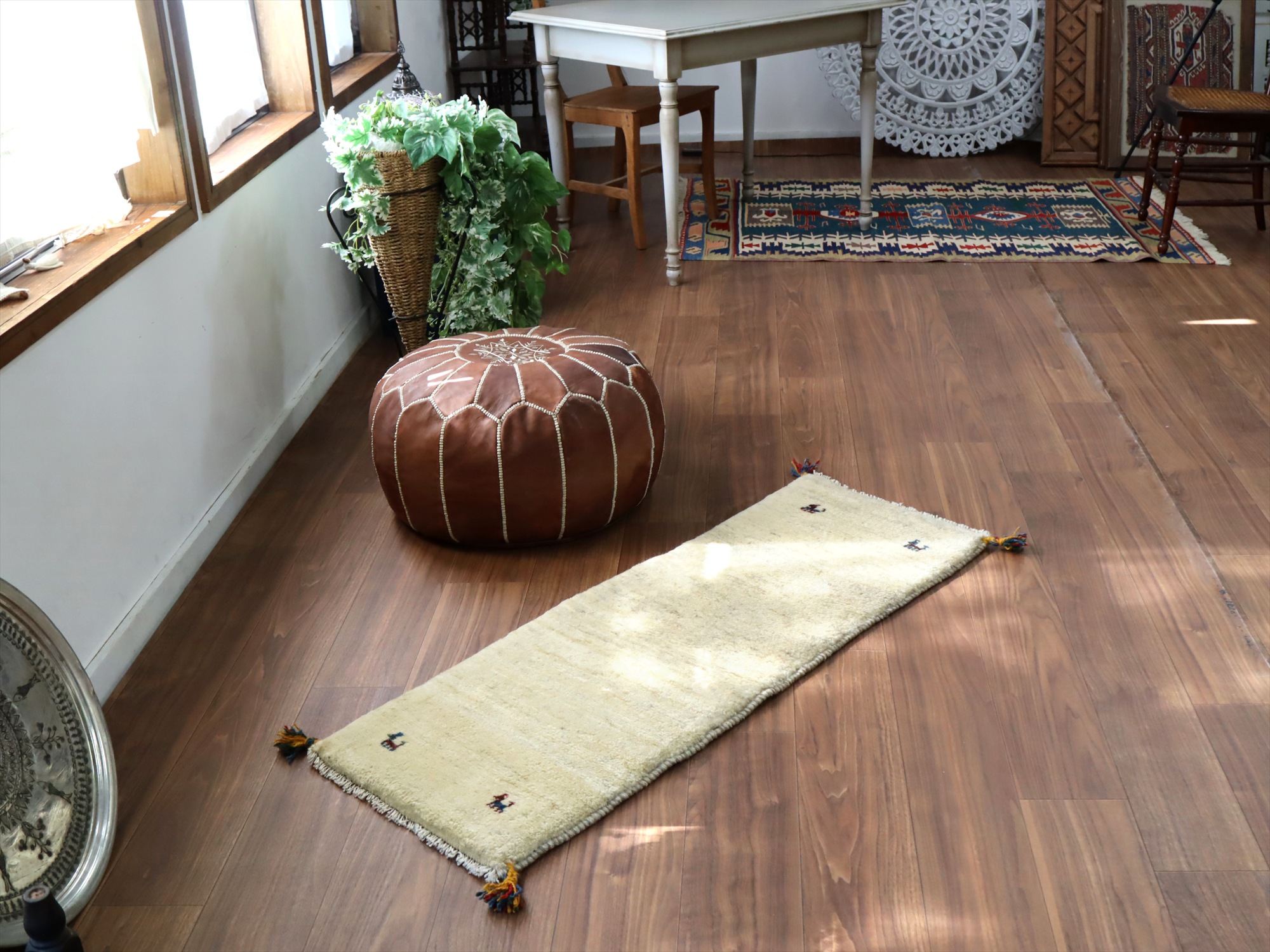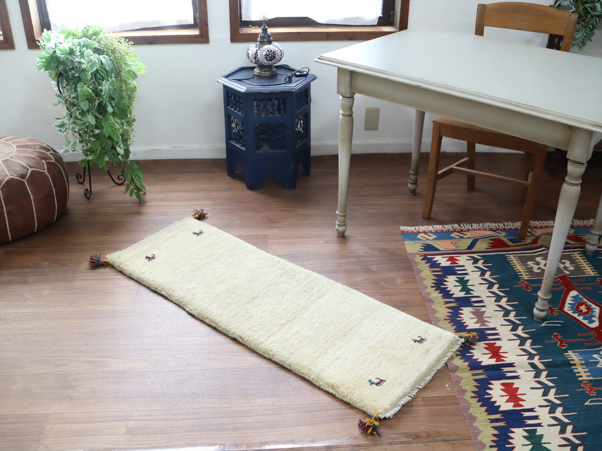 Key:ギャベ, ラグ, 手織り絨毯, 部族絨毯, 草木染, カシュカイ族, ウール製, キッチンマット, ベッドサイド, アイボリー, 東京,中野区, ガラタバザール, Gabbeh, Tribal Rug, Hand knotted, wool, Natural dye, Shiraz, Fars, Quashkai