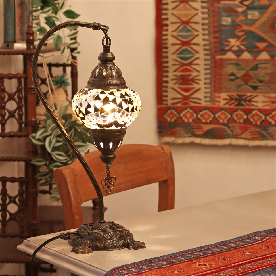 トルコで1つ1つ手作りされた、モザイクのガラス球が使われたテーブルランプ。
