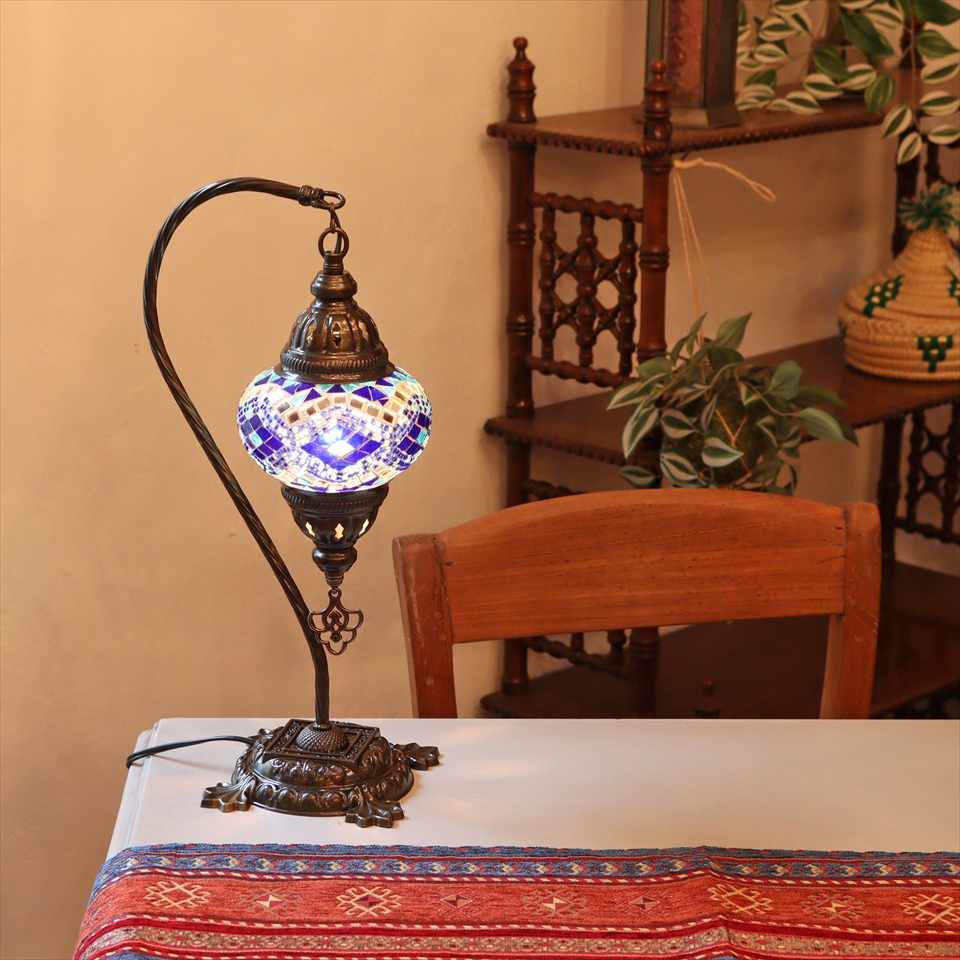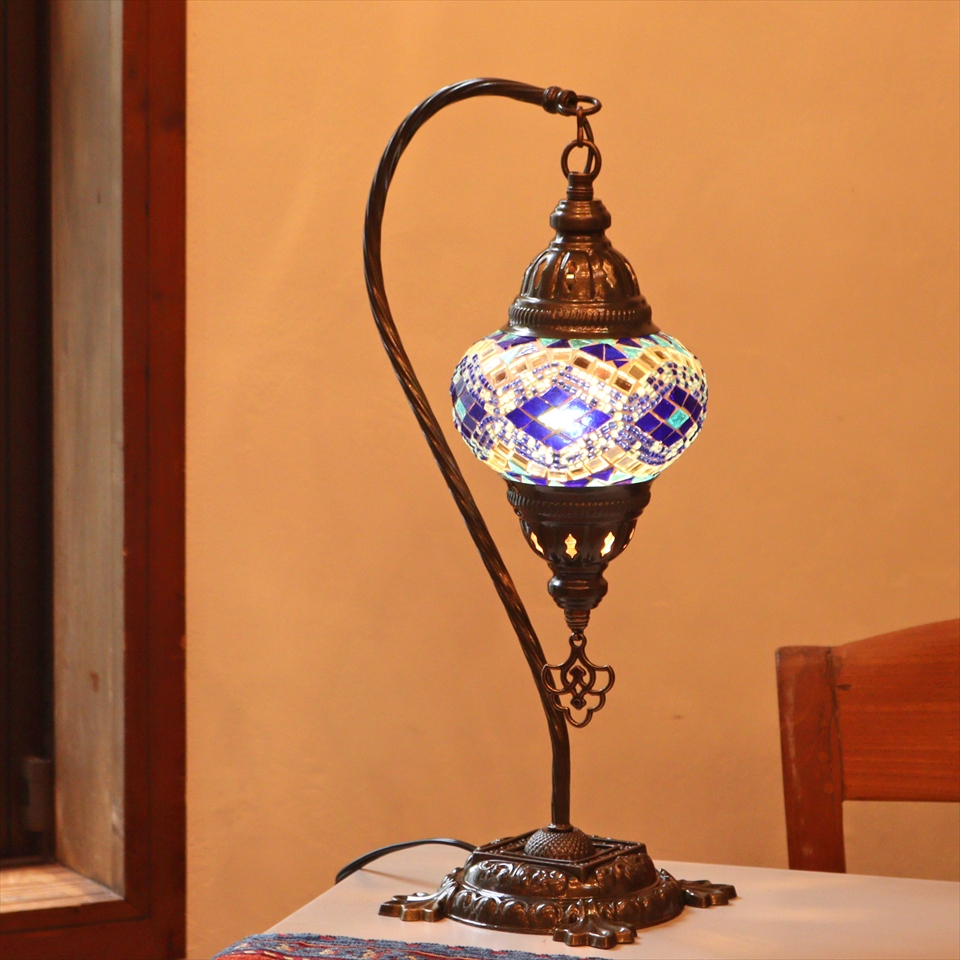 - トルコランプ モザイクテーブルランプ ハンギング 全高42cm 横幅23cm ブルー