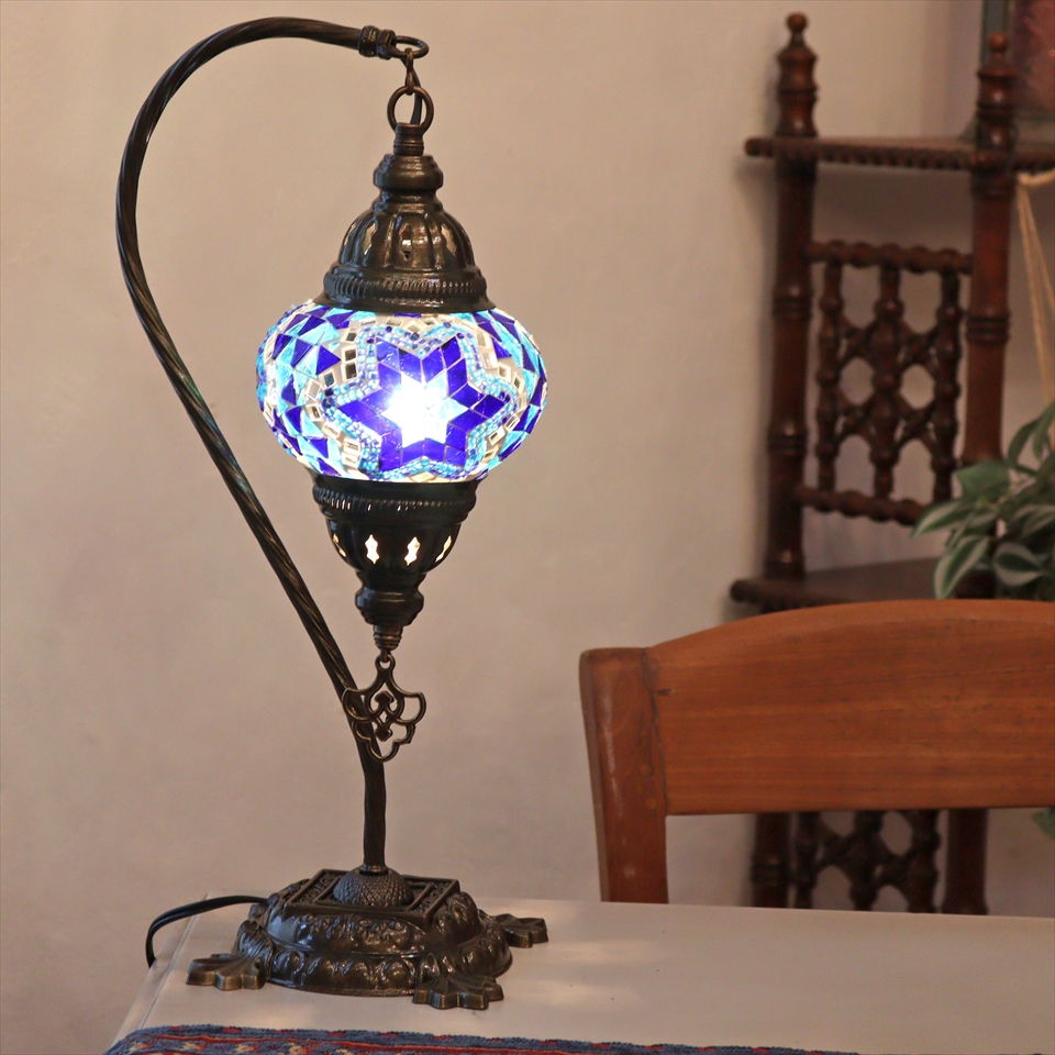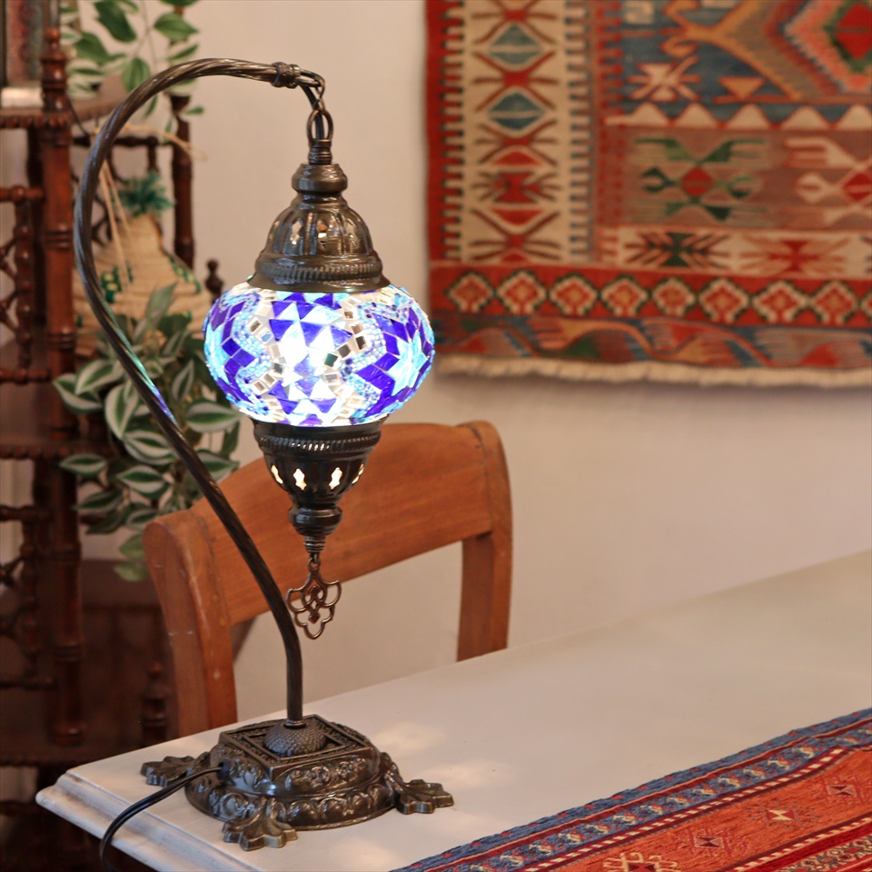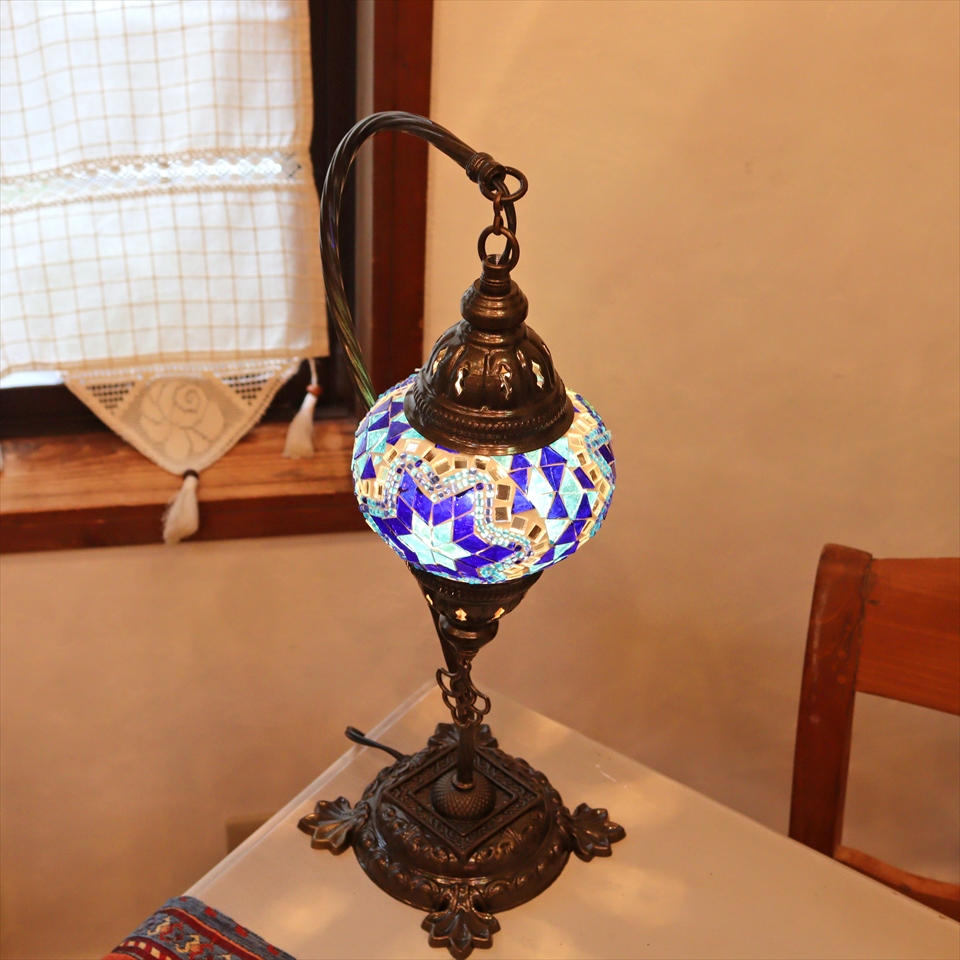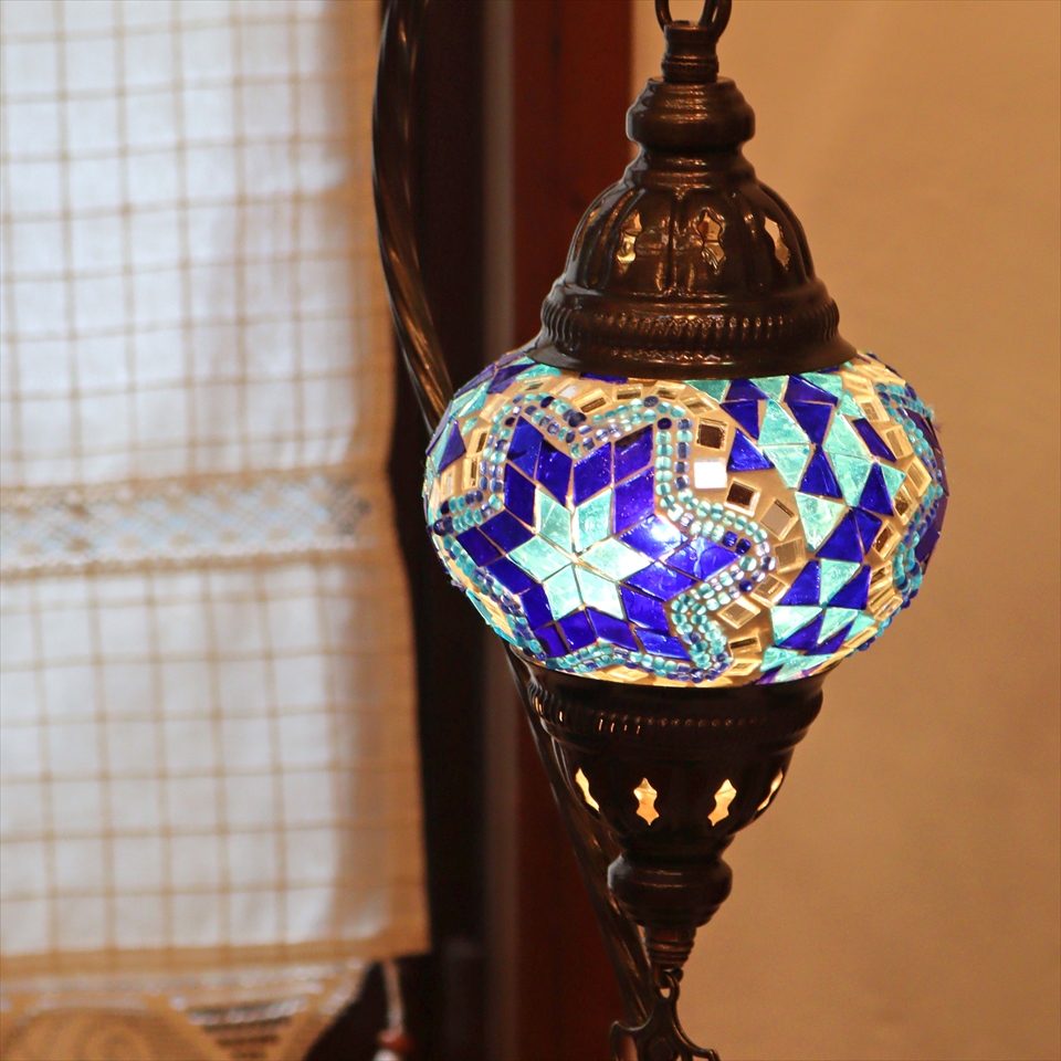 - トルコランプ モザイクテーブルランプ ハンギング 全高42cm 横幅23cm ブルー