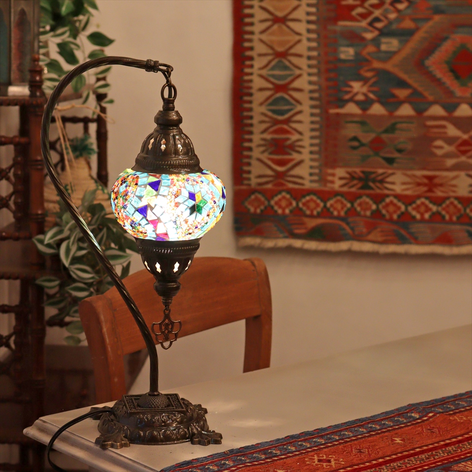 - トルコランプ モザイクテーブルランプ ハンギング 全高42cm 横幅23cm ブルー