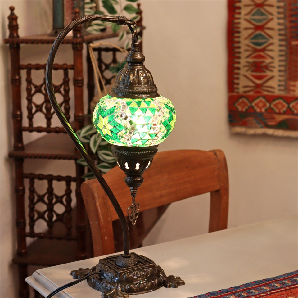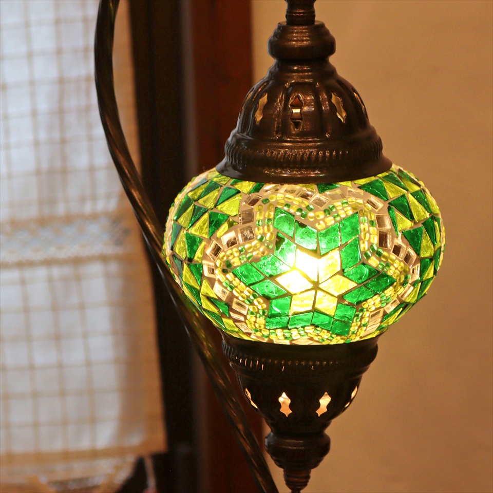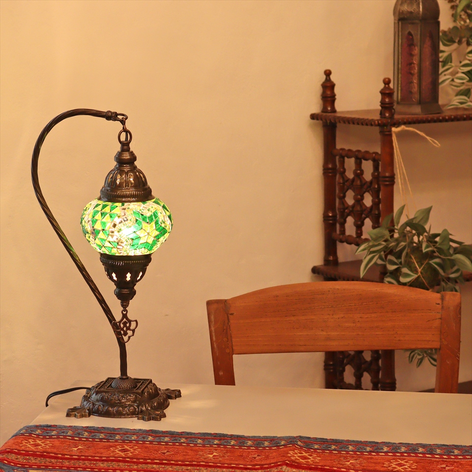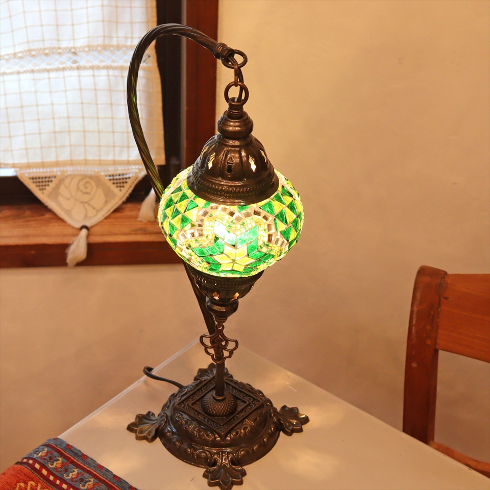 - トルコランプ モザイクテーブルランプ ハンギング 全高42cm 横幅23cm グリーン