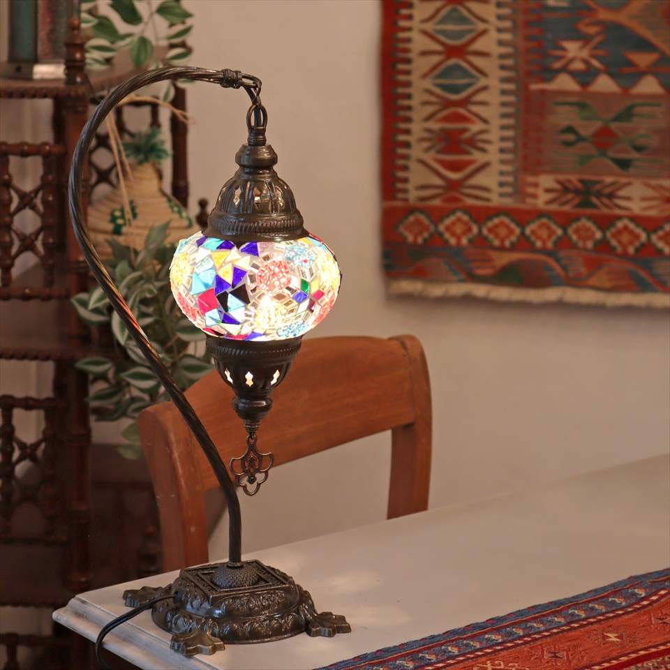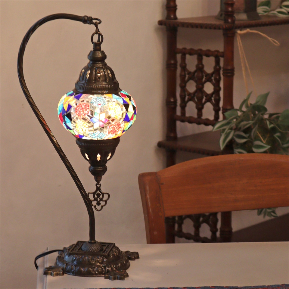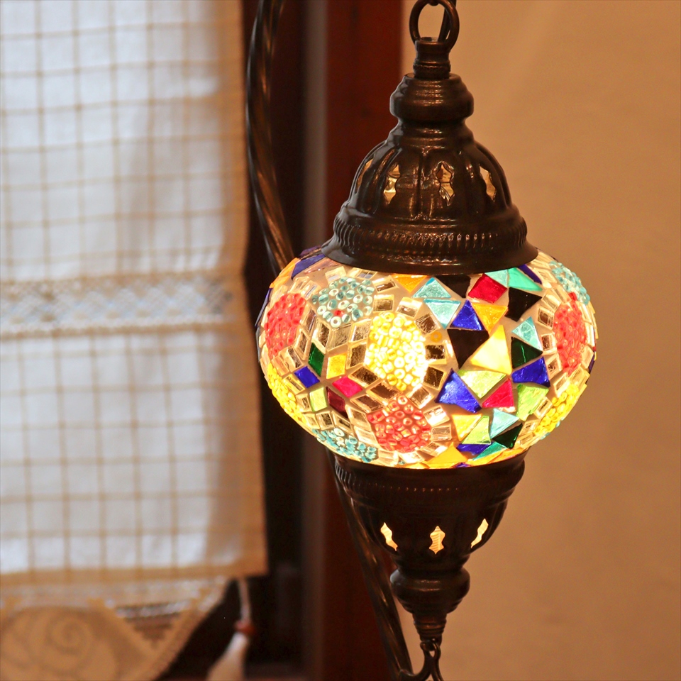 - トルコランプ モザイクテーブルランプ ハンギング 全高42cm 横幅23cm ミックスカラー
