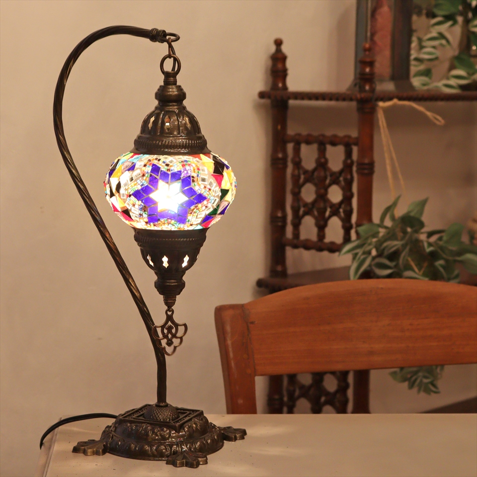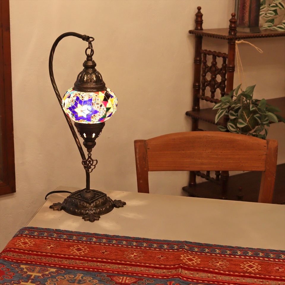 - トルコランプ モザイクテーブルランプ ハンギング 全高42cm 横幅23cm ミックスカラー