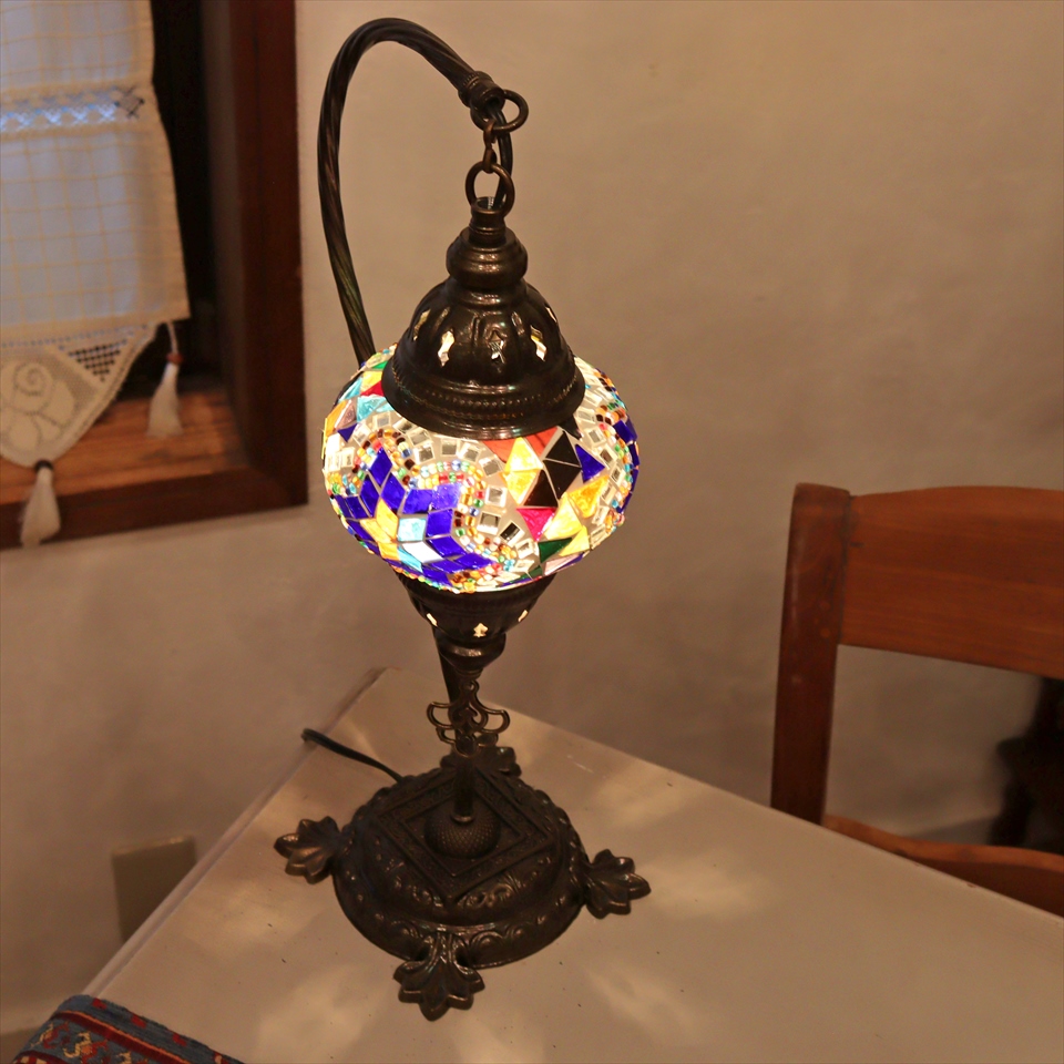 トルコで1つ1つ手作りされた、モザイクのガラス球が使われたテーブルランプ。