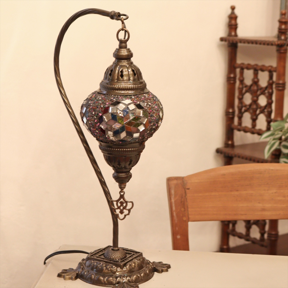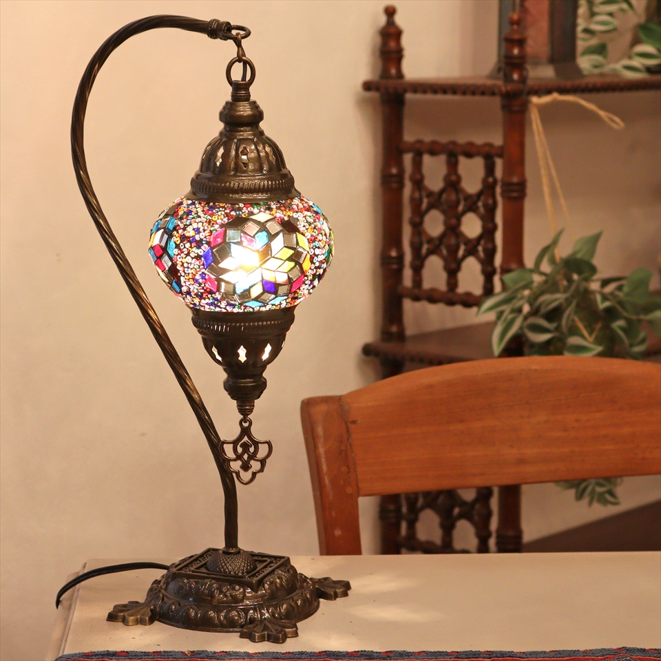 - トルコランプ モザイクテーブルランプ ハンギング 全高42cm 横幅23cm ミックスカラー