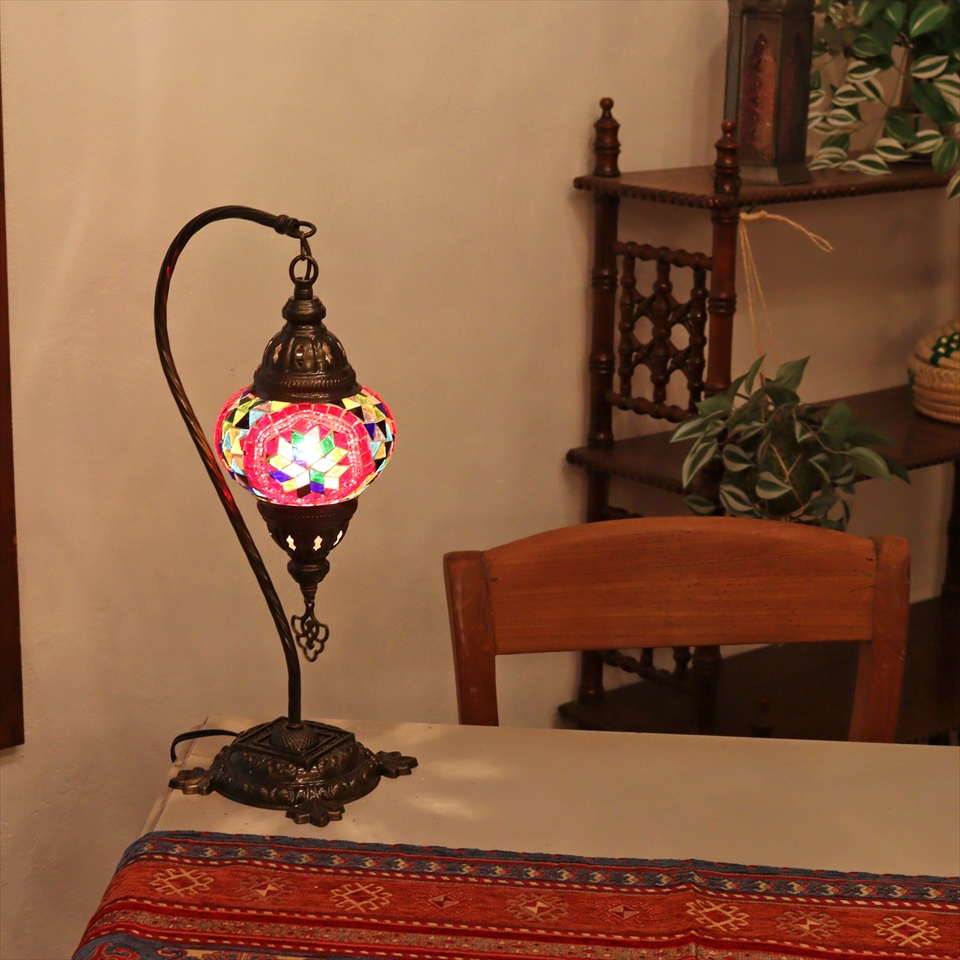 - トルコランプ モザイクテーブルランプ ハンギング 全高42cm 横幅23cm レッド