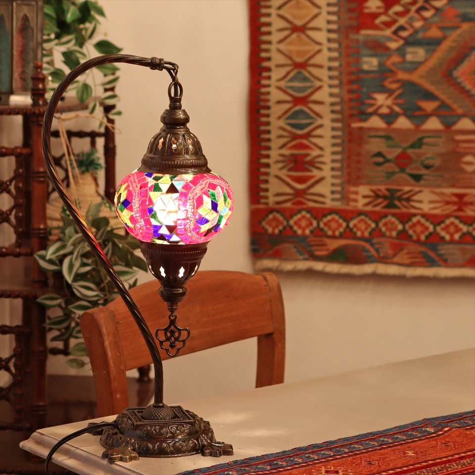 トルコで1つ1つ手作りされた、モザイクのガラス球が使われたテーブルランプ。