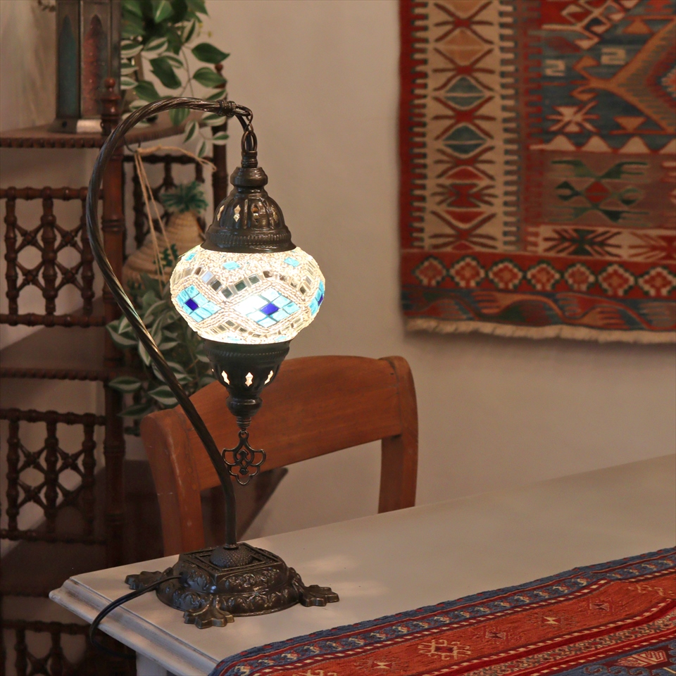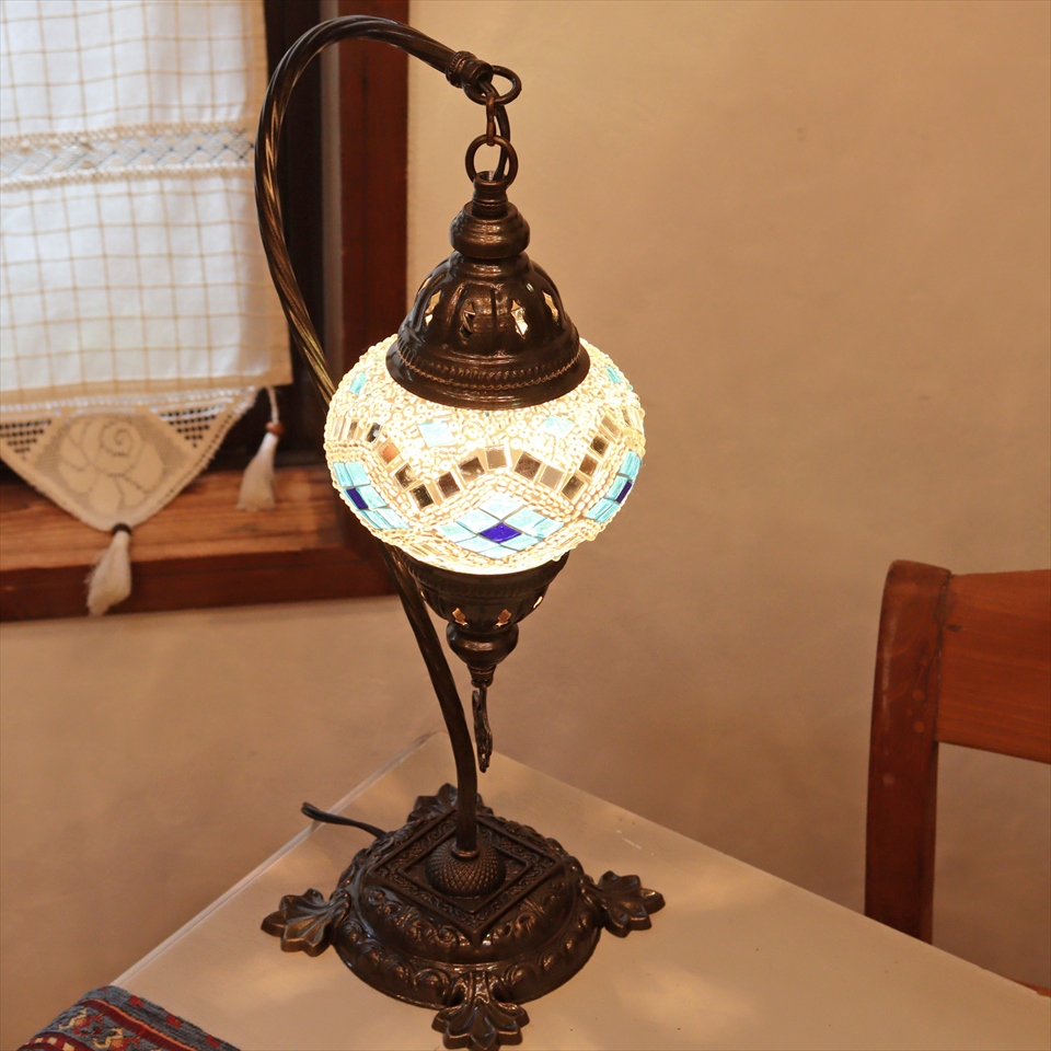 - トルコランプ モザイクテーブルランプ ハンギング 全高42cm 横幅23cm ホワイト