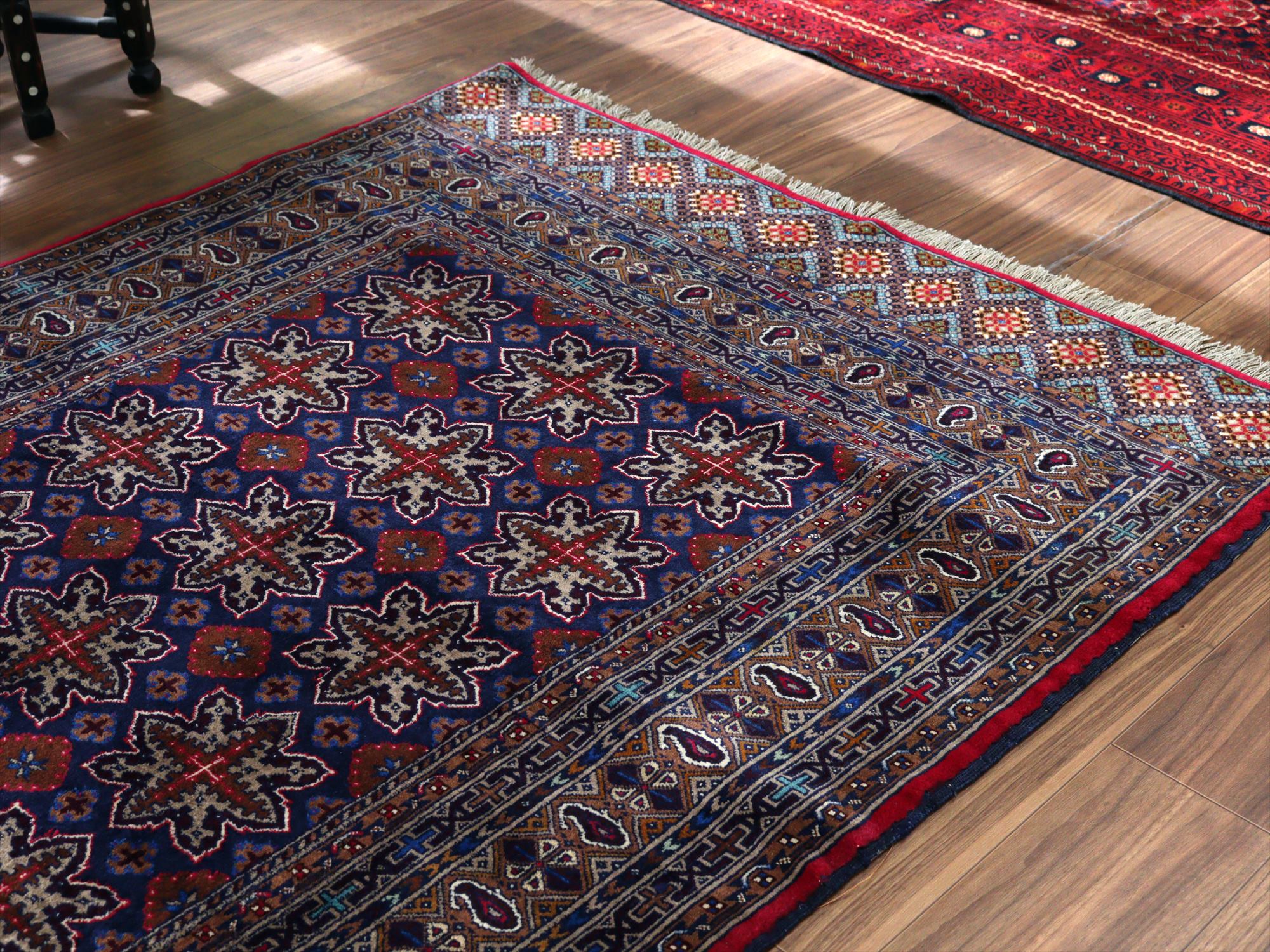 - イランの手織り絨毯 マシュハド175×125cm 連なる幾何学模様