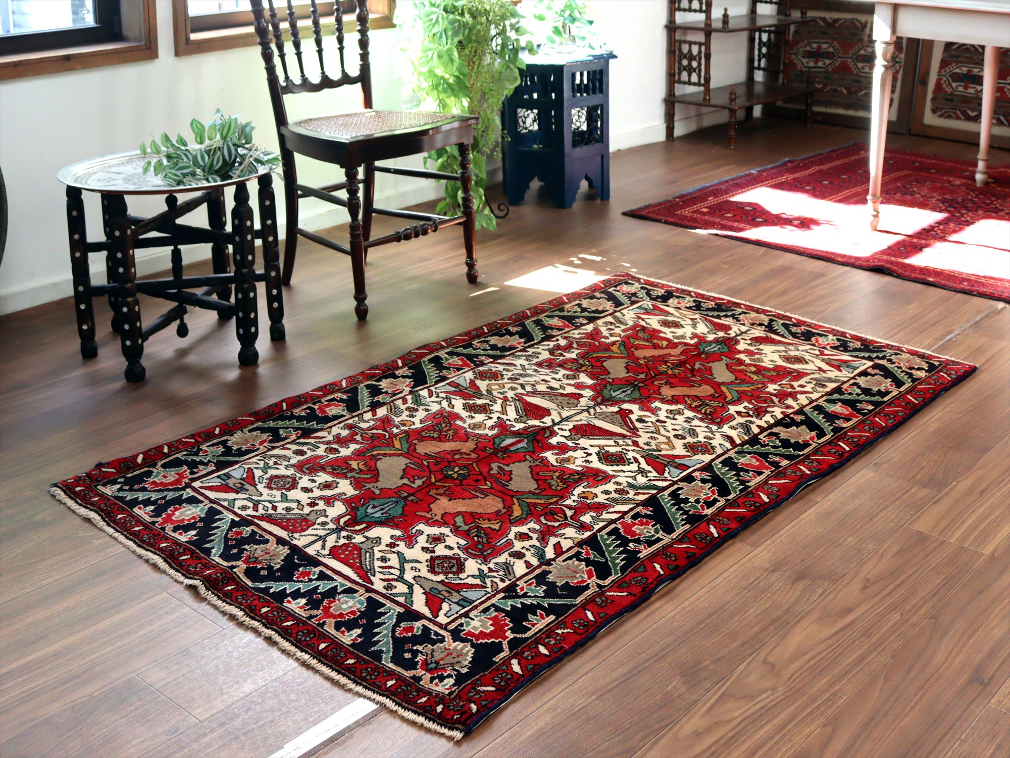 - イランの手織り絨毯 バルーチ171×99cm 動物と花 トライバルラグ