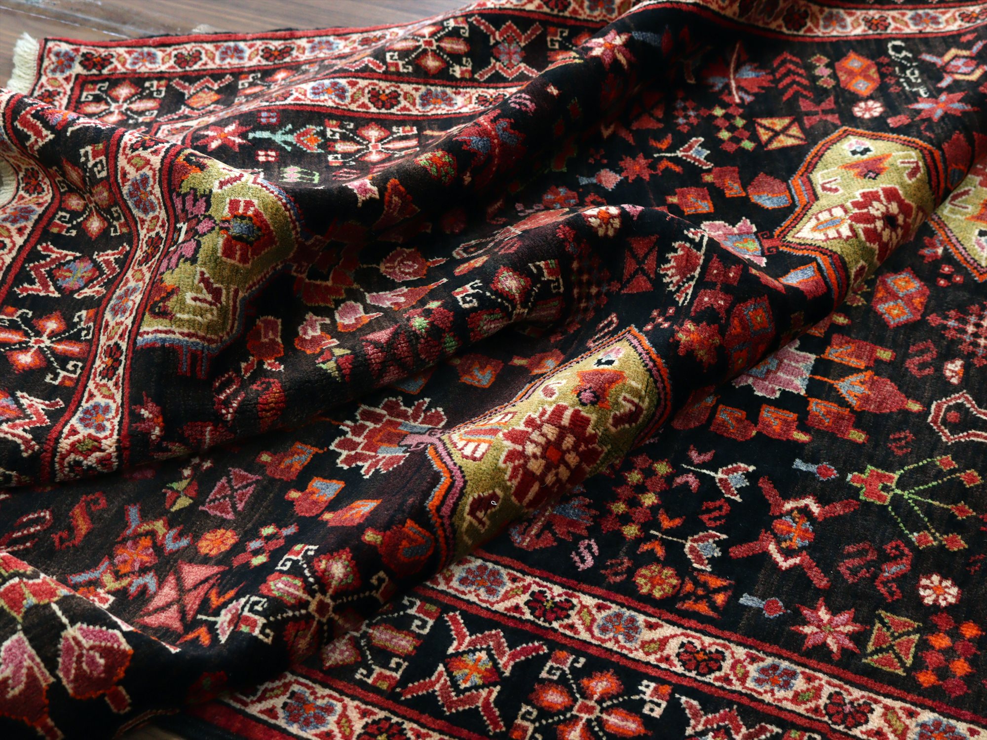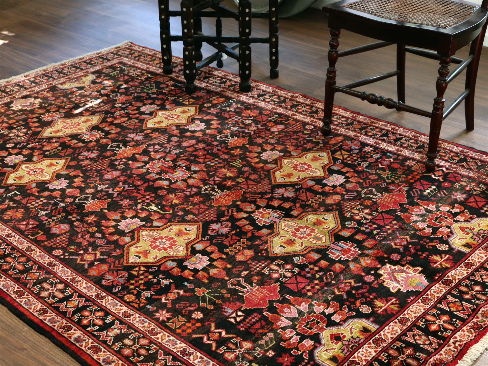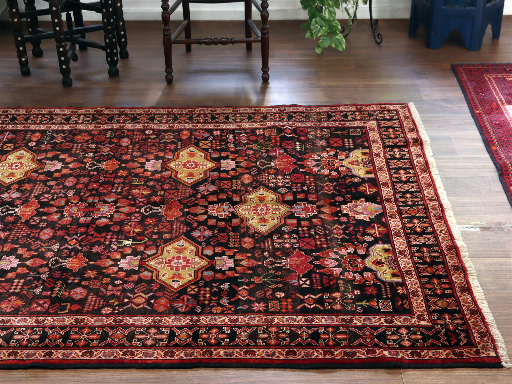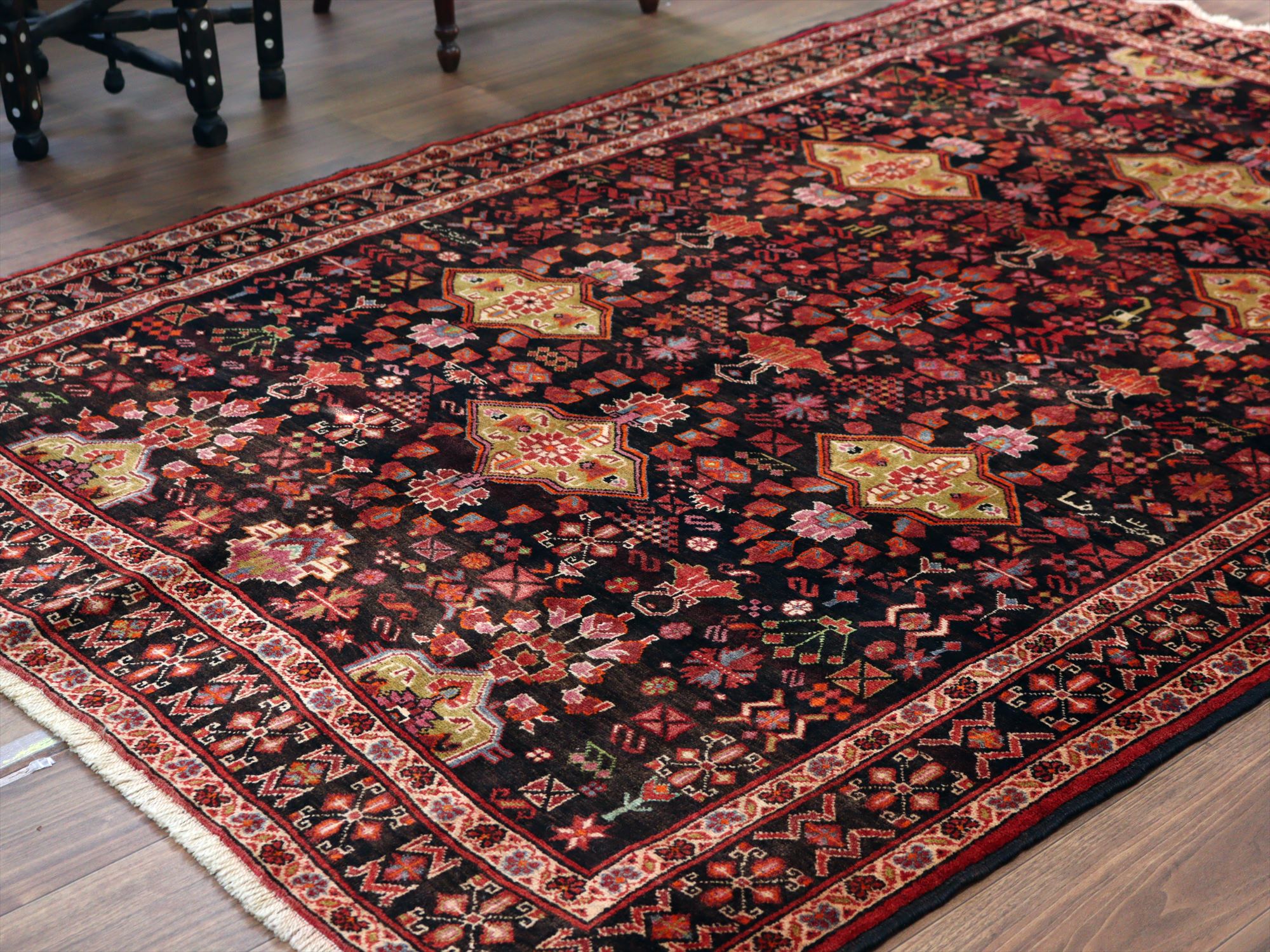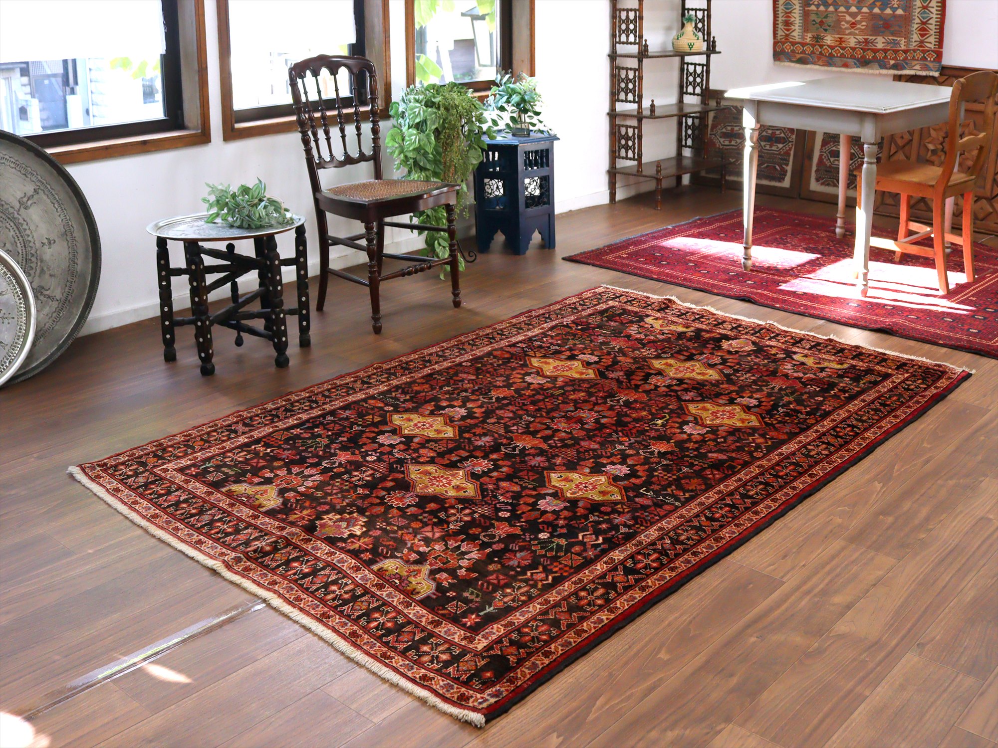- イランの手織り絨毯 バルーチ219×145cm 小花と幾何学模様 トライバルラグ