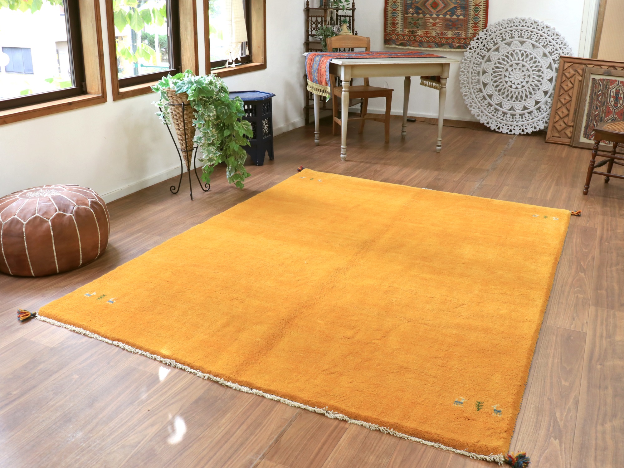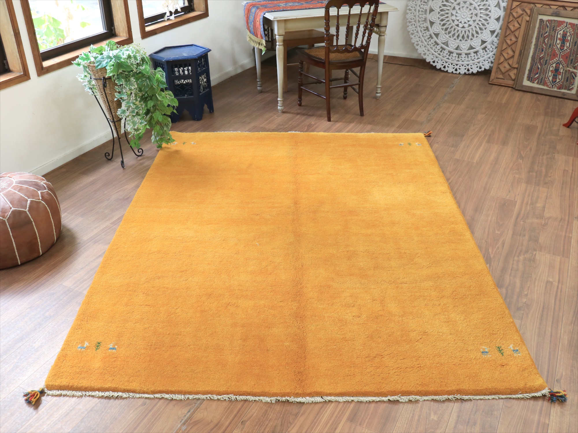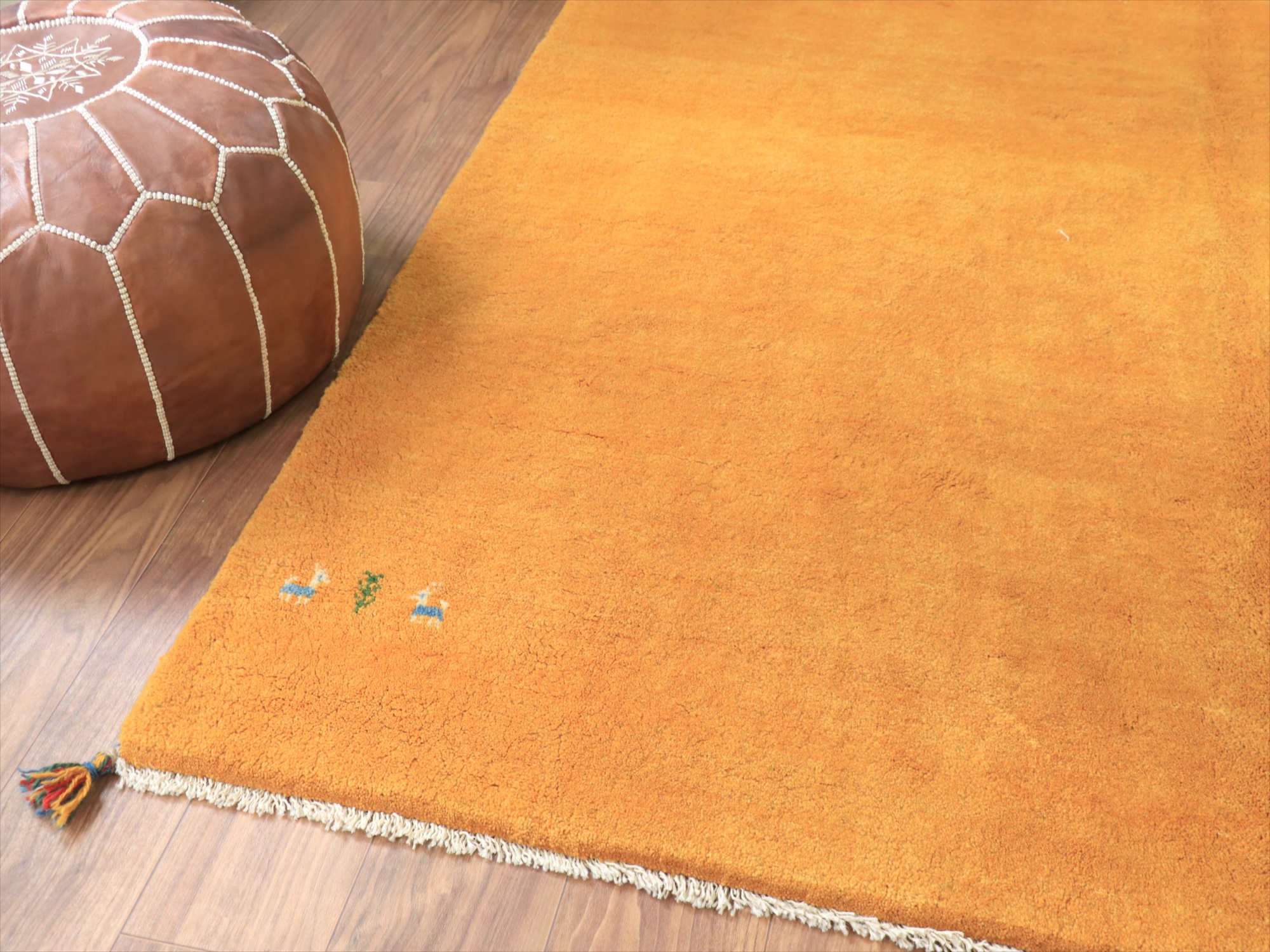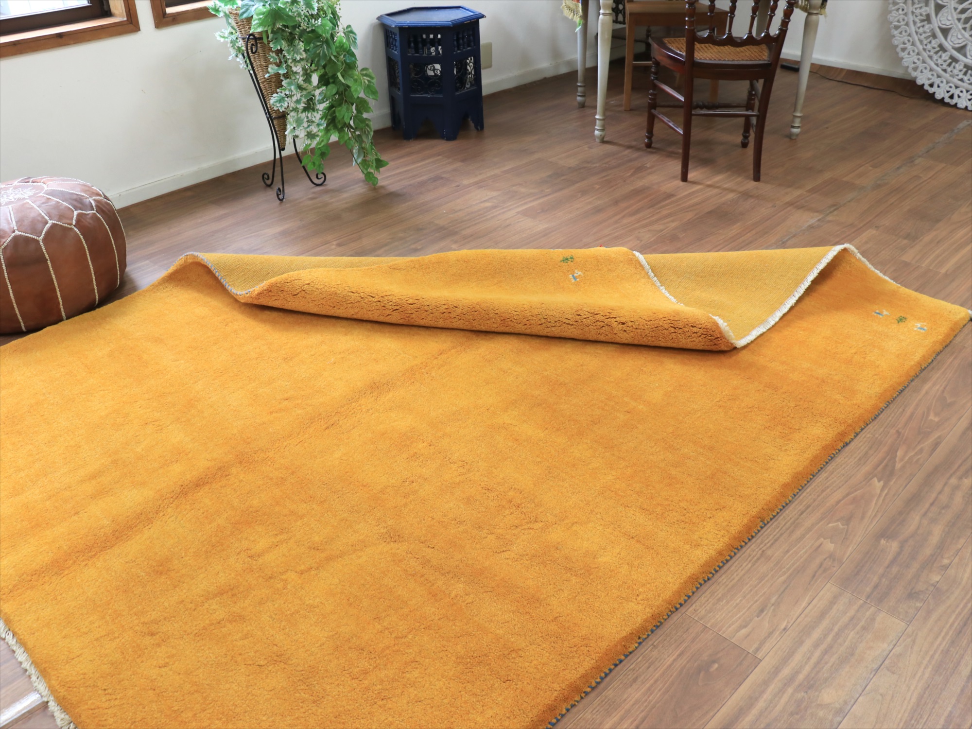 ギャッベ イラン産手織り オレンジ 228x175cm 無地 シンプル 動物モチーフ