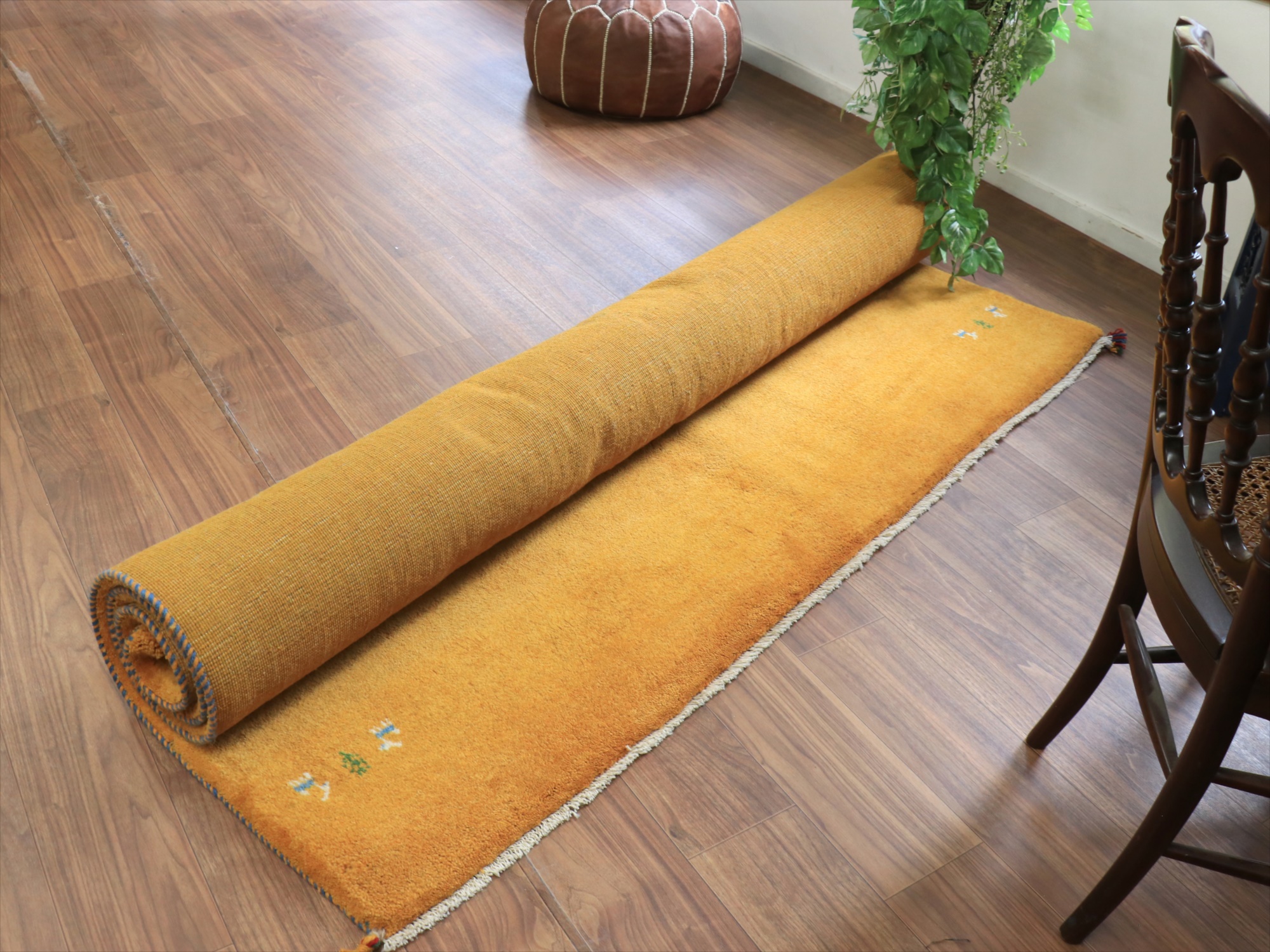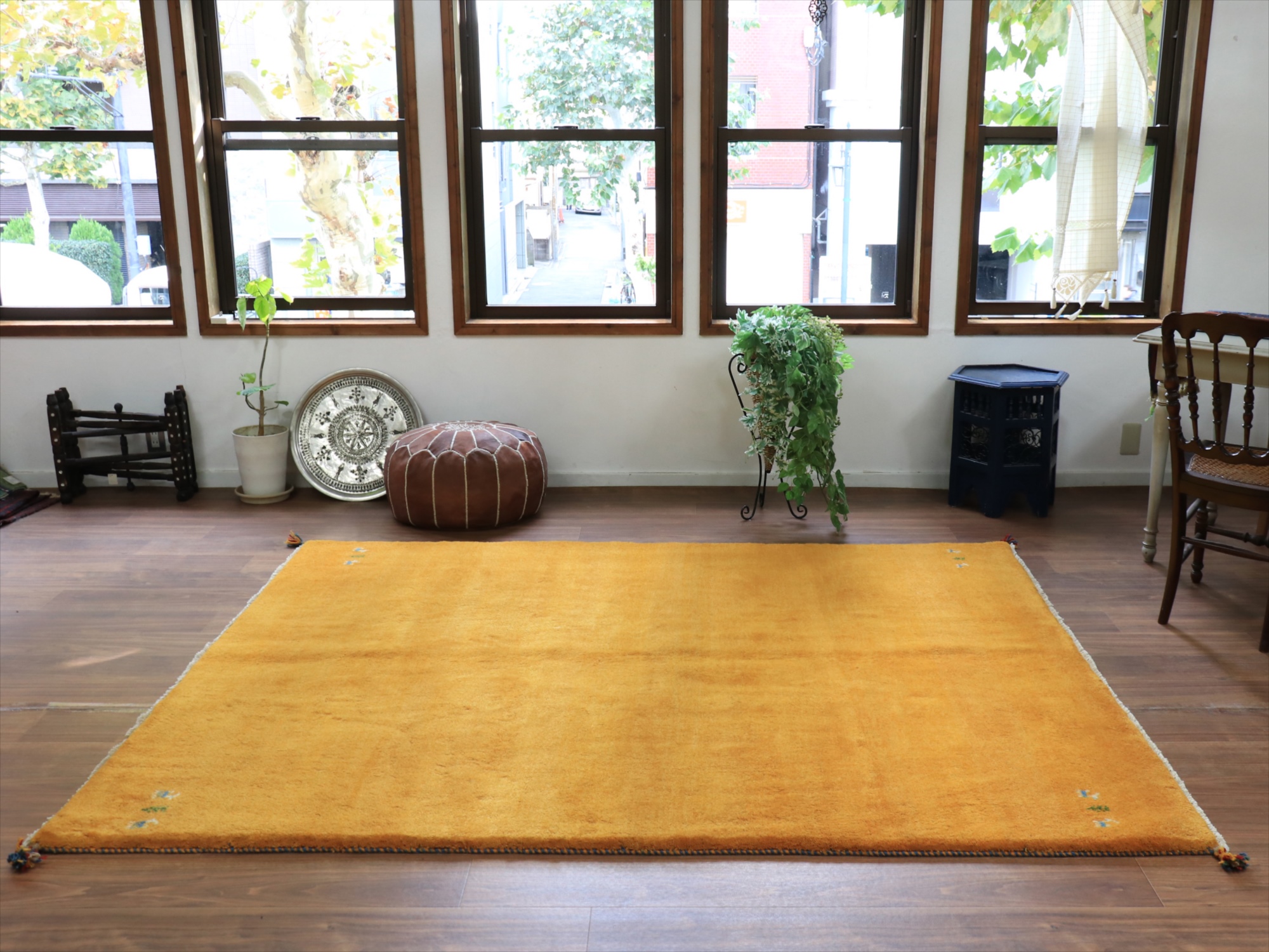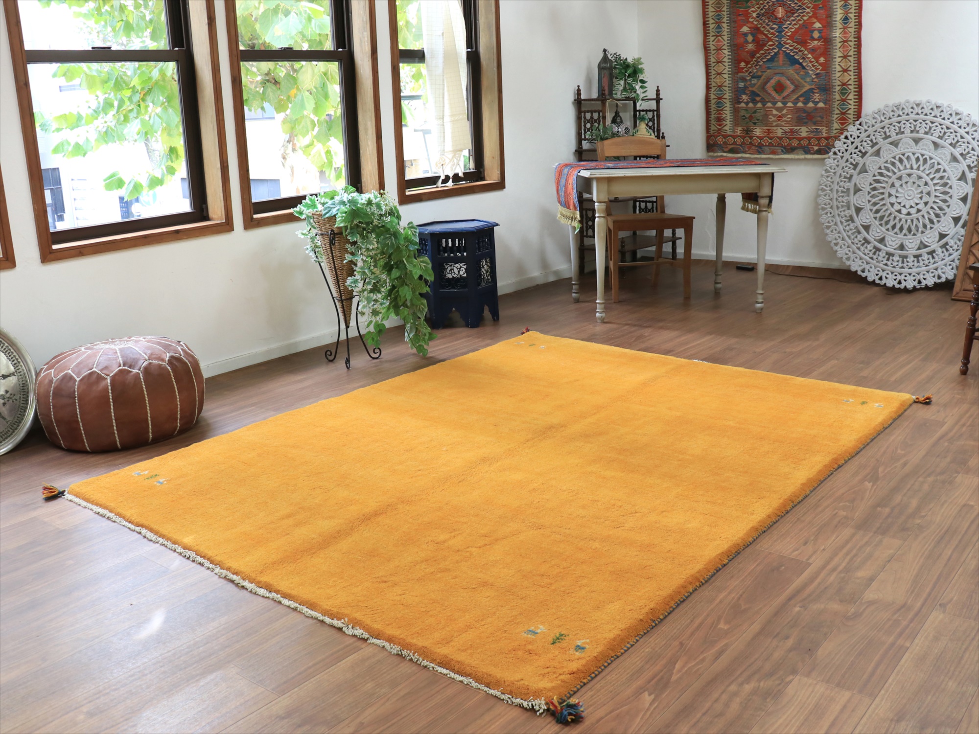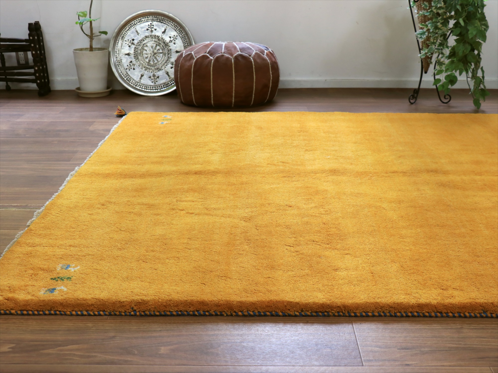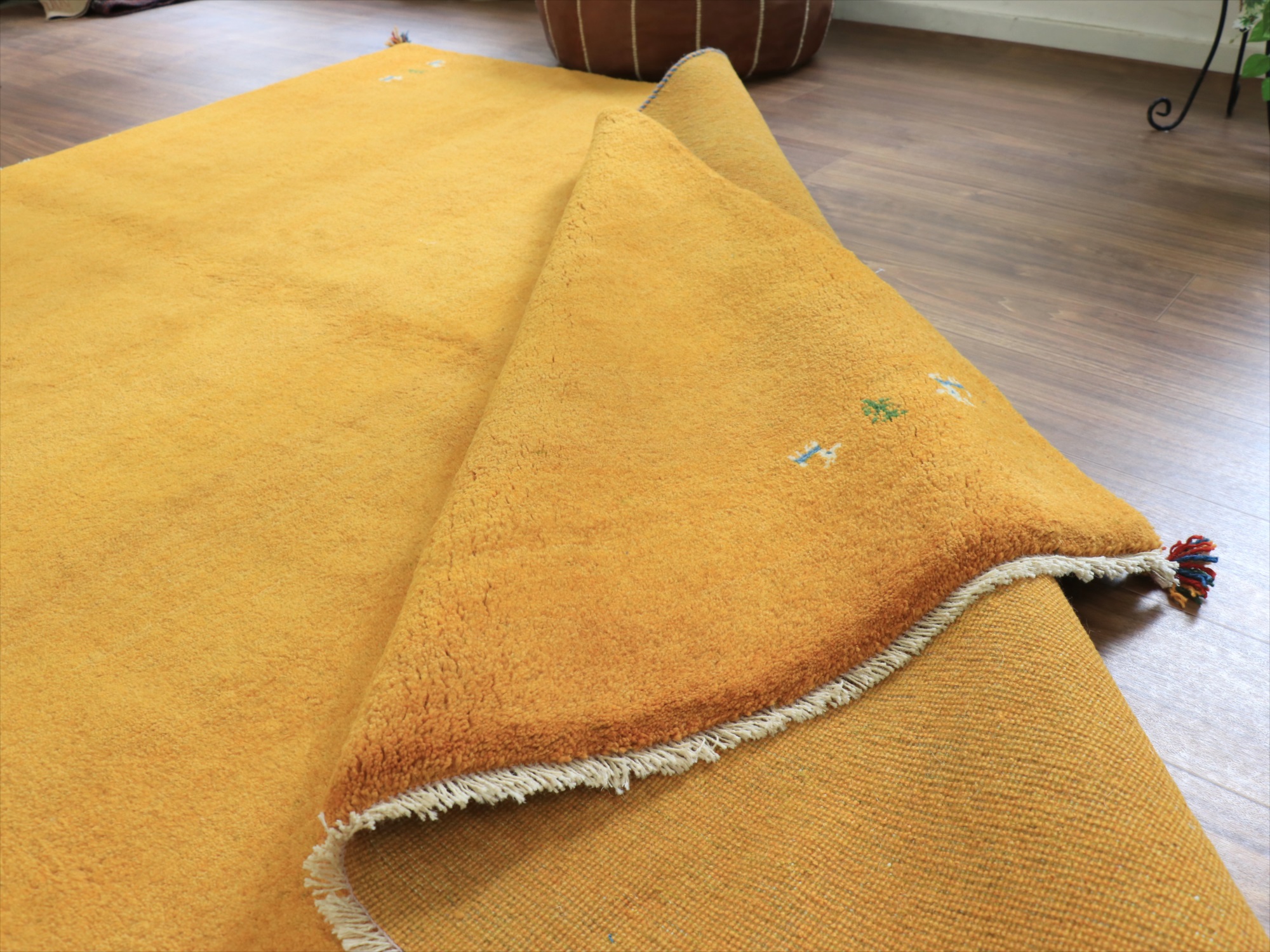 ギャッベ イラン産手織り オレンジ 228x175cm 無地 シンプル 動物モチーフ