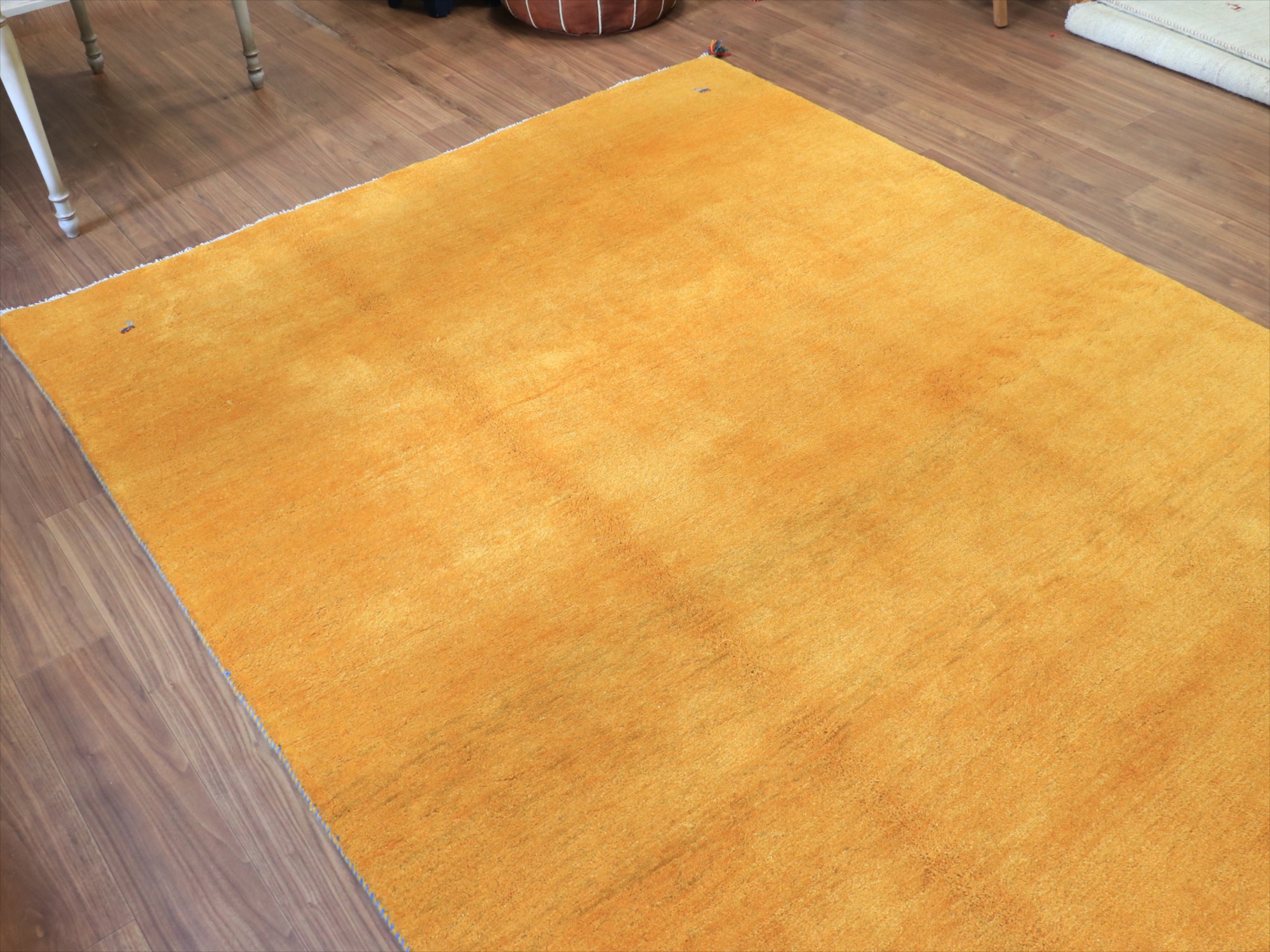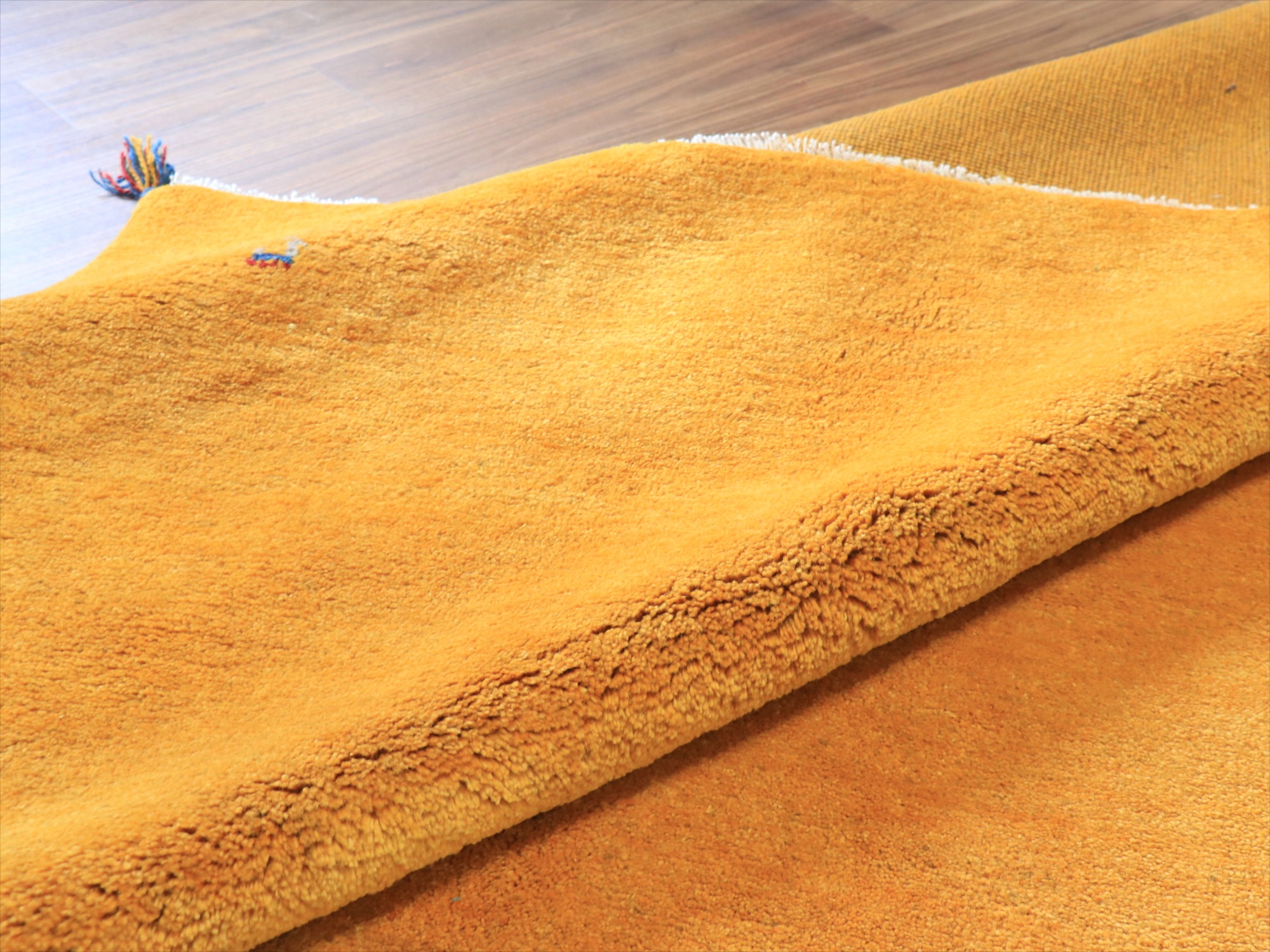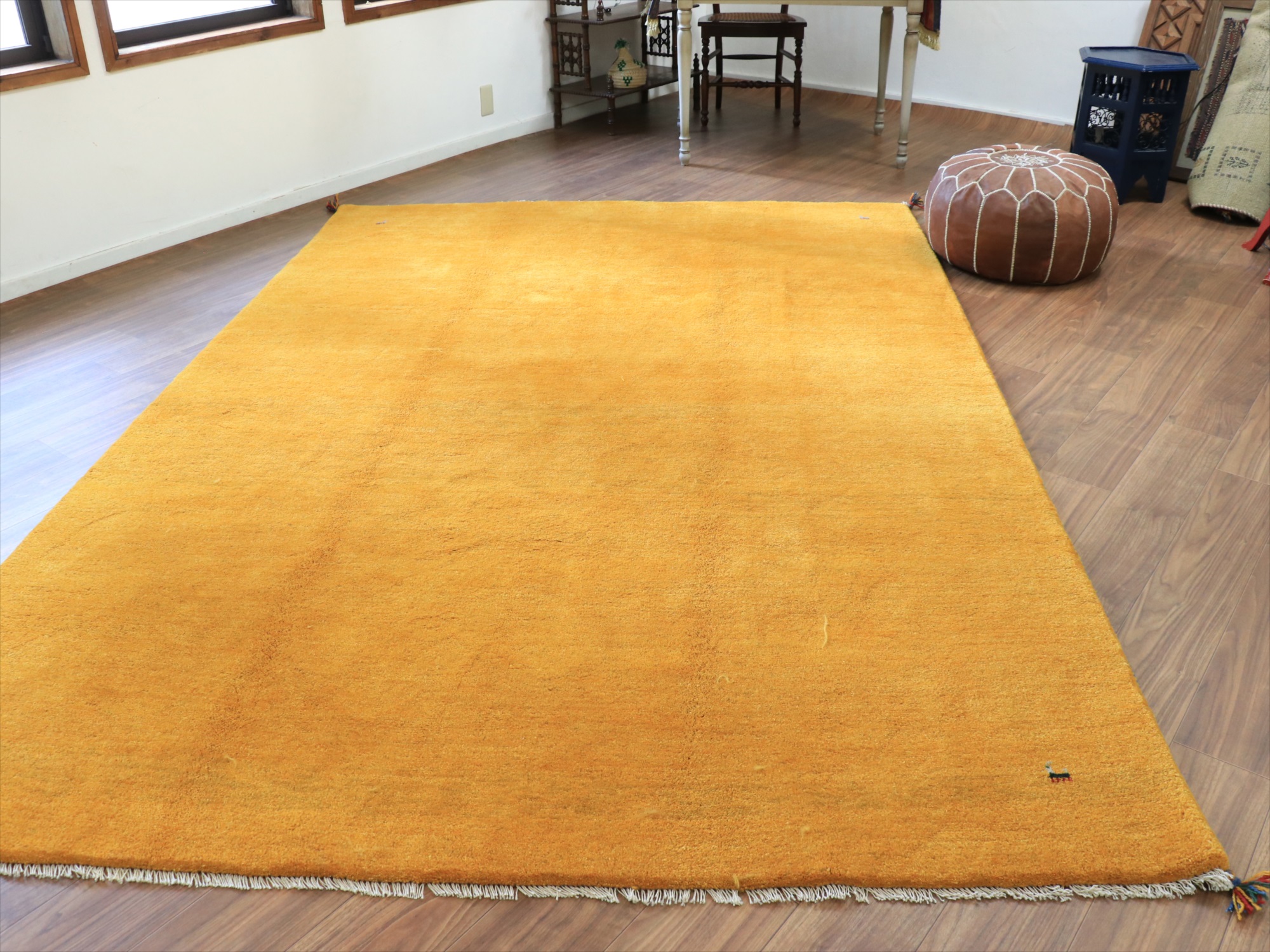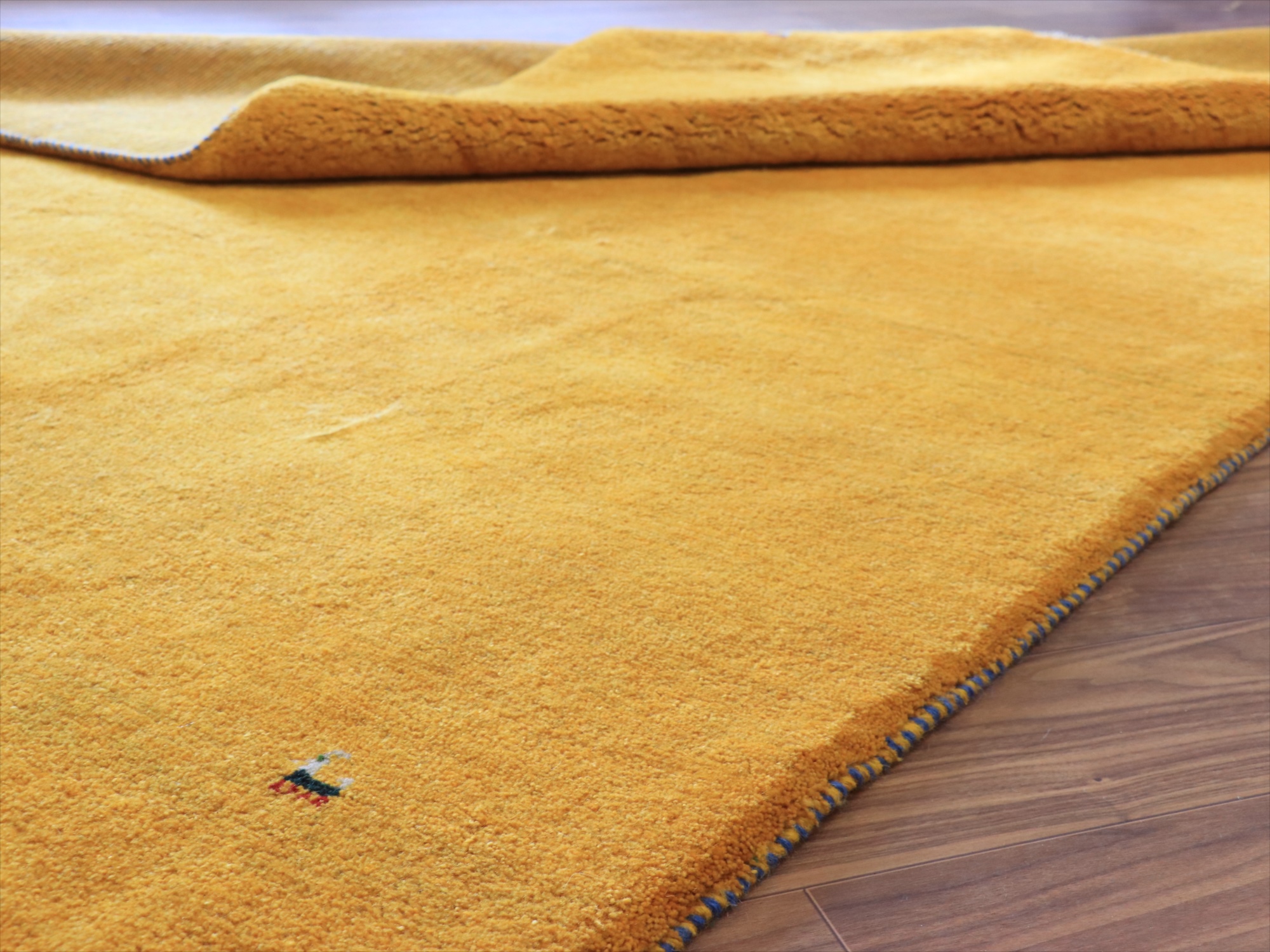 - ギャッベ イエロー イラン手織りラグ 290x198cm 無地 イラン産 カシュカイ族の手織りラグ