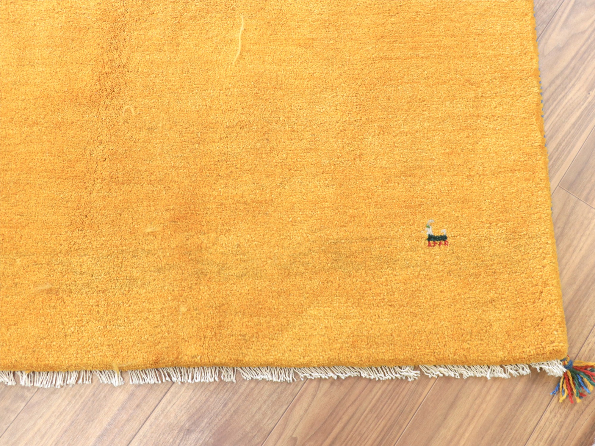 ギャッベ イエロー イラン手織りラグ 290x198cm 無地 イラン産 カシュカイ族の手織りラグ