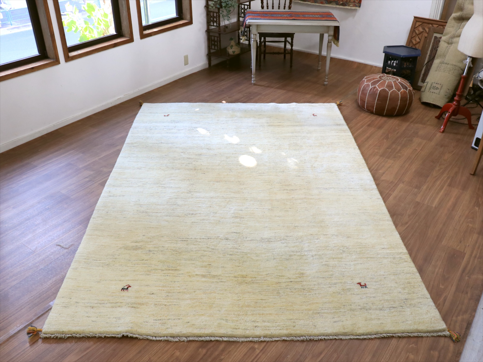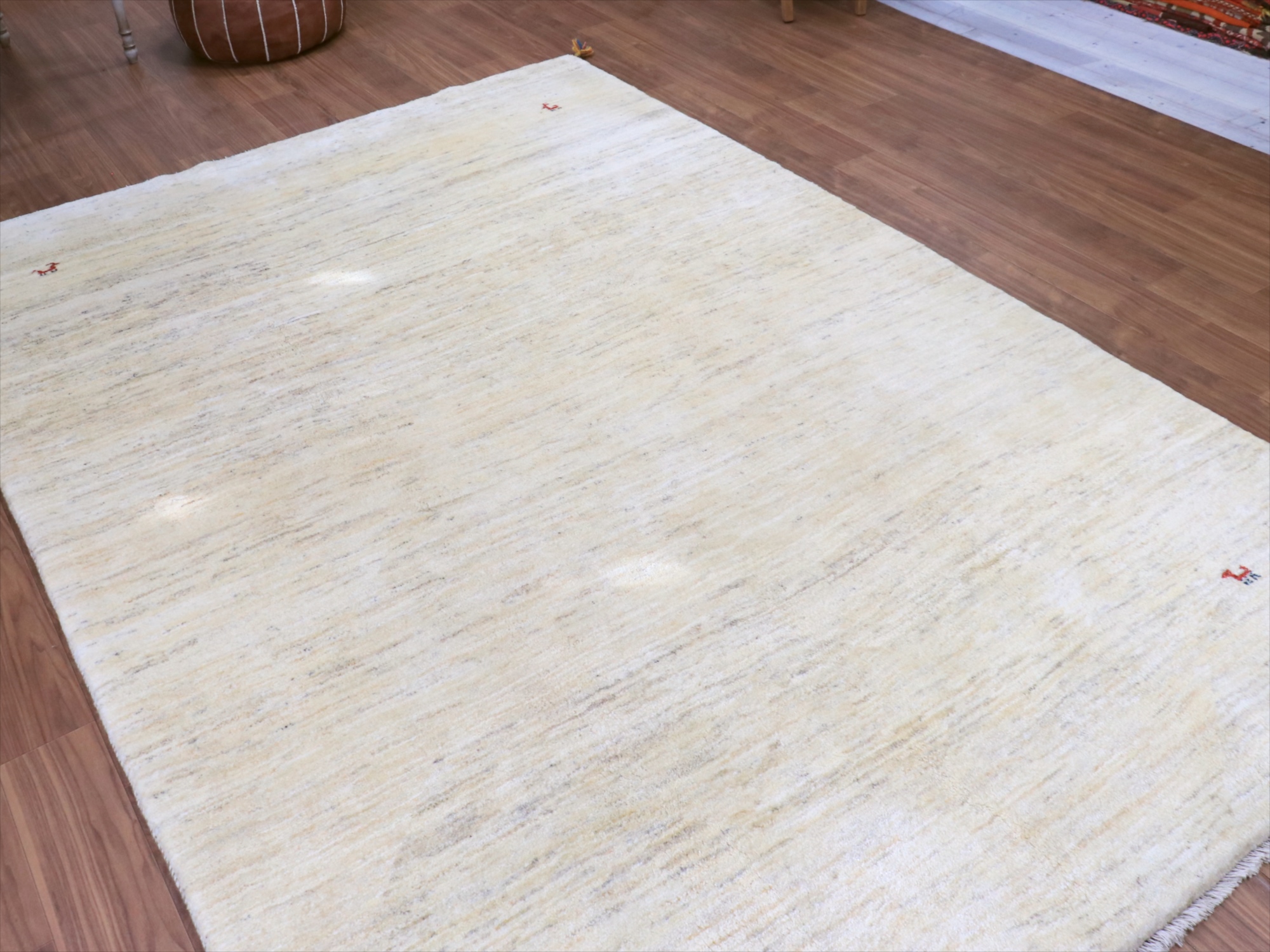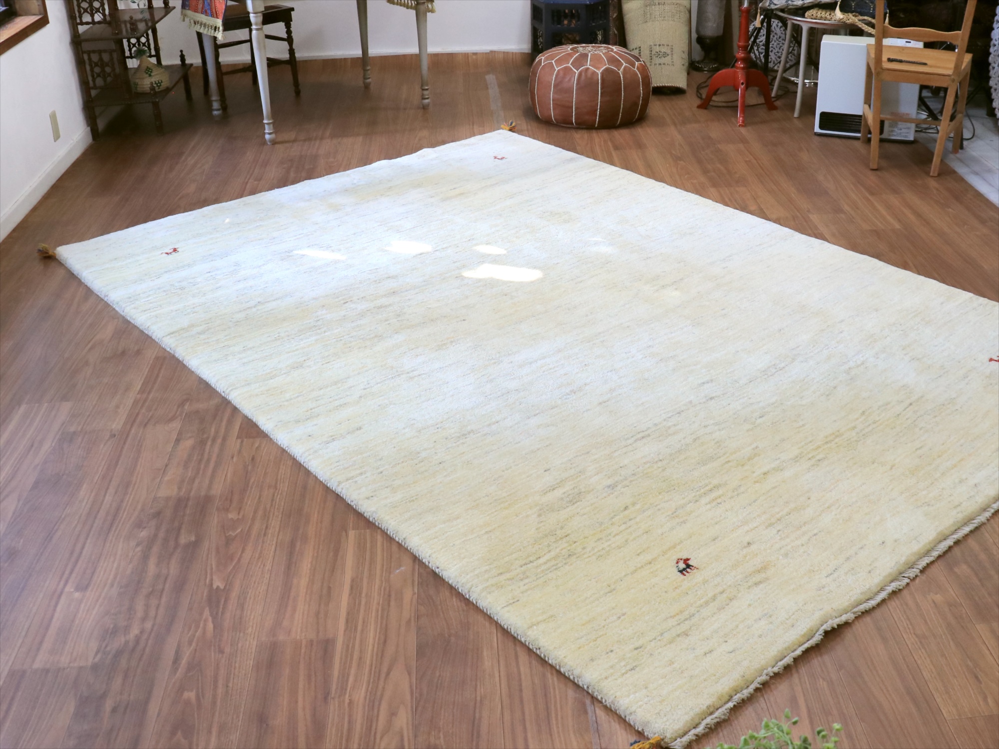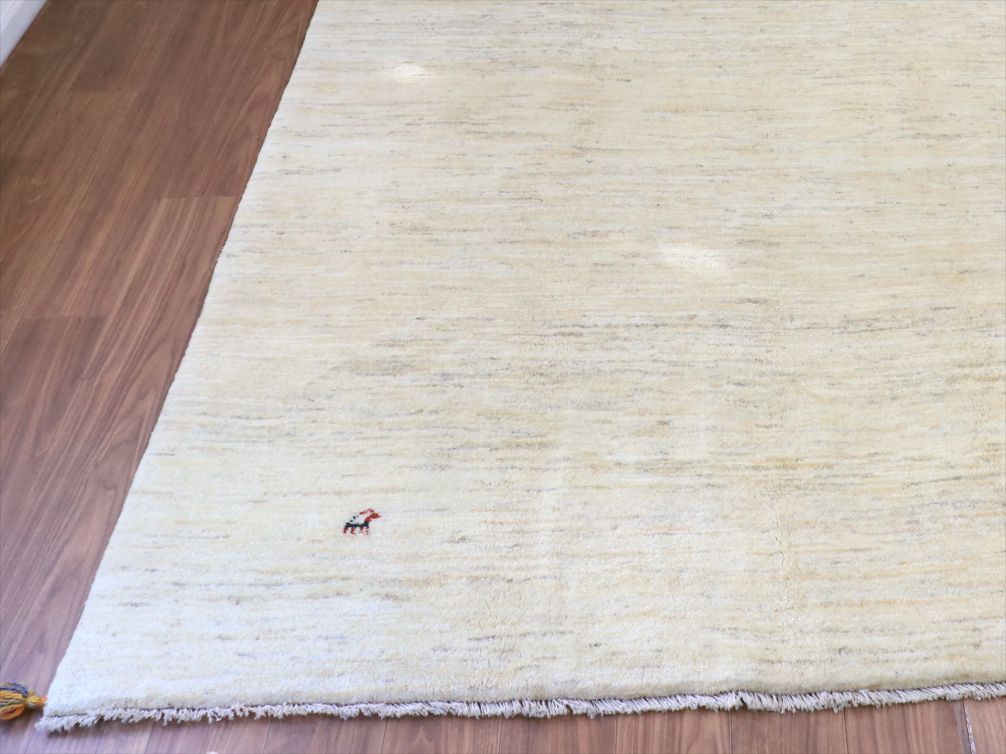 6. ギャッベ イラン産手織りラグ 292x200cm シンプル 無地 ナチュラルアイボリー ベージュ