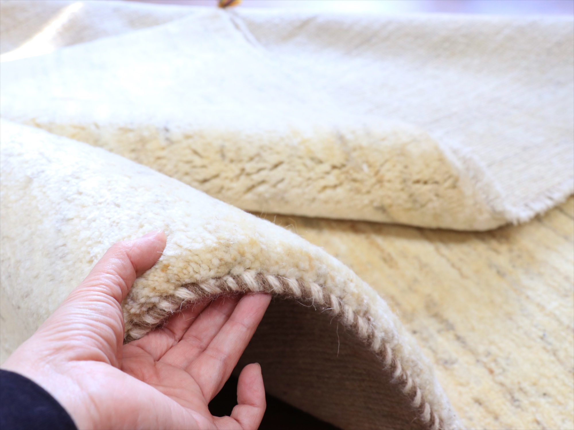 5. ギャッベ イラン産手織りラグ 292x200cm シンプル 無地 ナチュラルアイボリー ベージュ