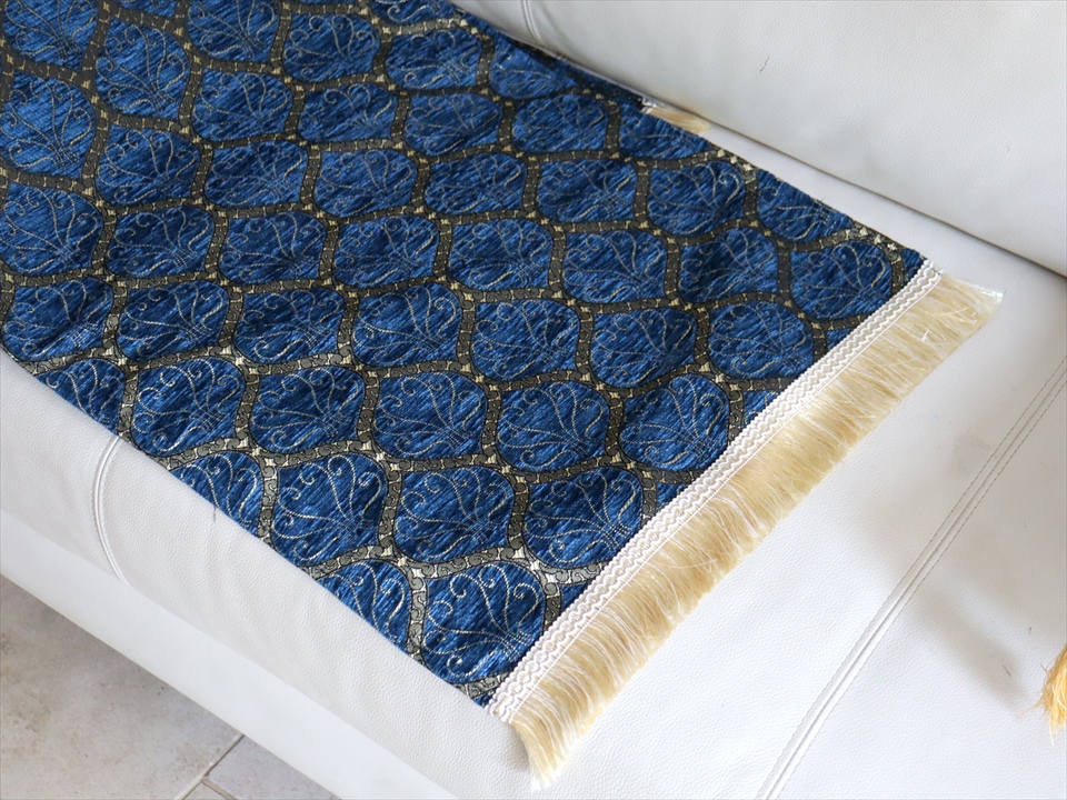テーブルランナー ベッドスロー 135×44cm クレスト ネイビー Table runner, Bed through, Turkish textile, トルコ製ファブリック