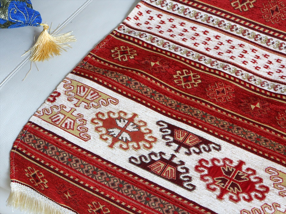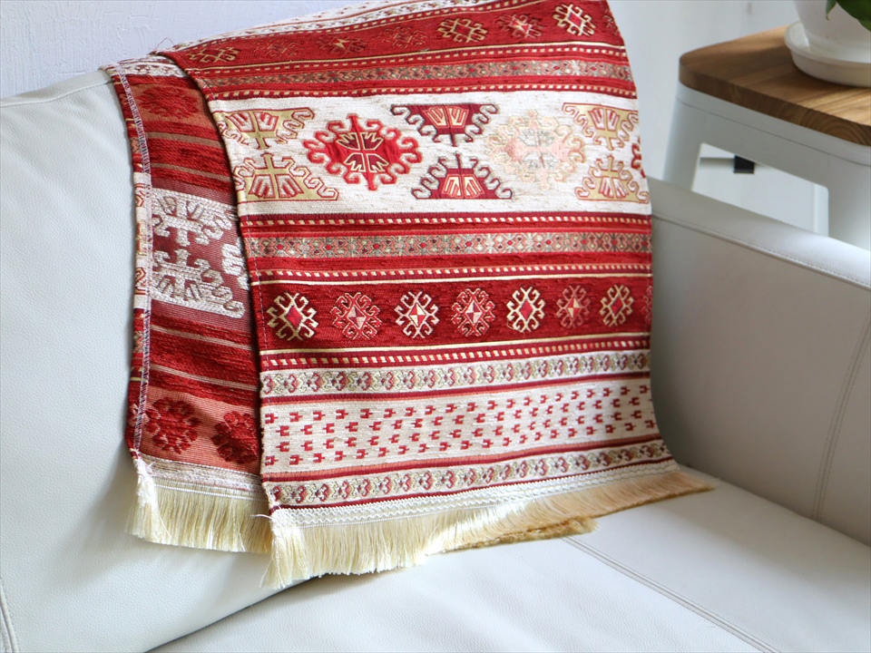 テーブルランナー ベッドスロー 135×44cm アジデルハ アイボリーTable runner, Bed through, Turkish textile, トルコ製ファブリック