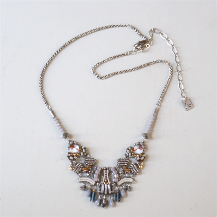 淡い銀白色のロマンティックな雰囲気のShivering Moonlightという名のシリーズ。繊細なビーズパーツが揺れる優し気な印象のネックレスです。