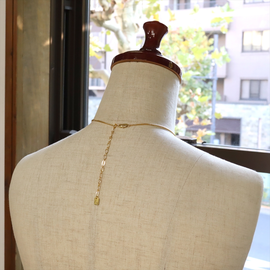 10cmのアジャスター付で、お洋服の襟元に合わせて長さを調節できます。