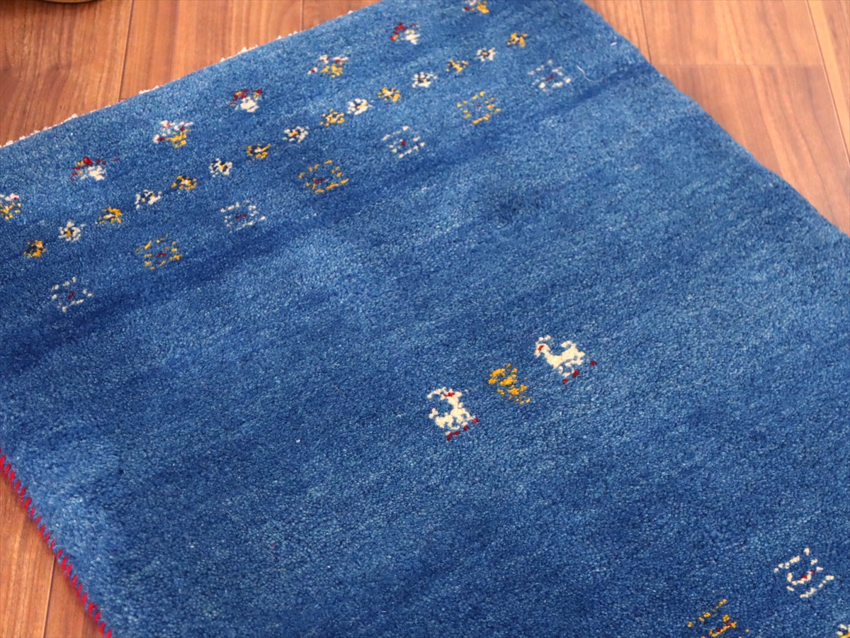 【15%OFF】ギャッベ イラン産手織り 86×67cm 玄関マット ブルー カラフルな生命の樹と動物