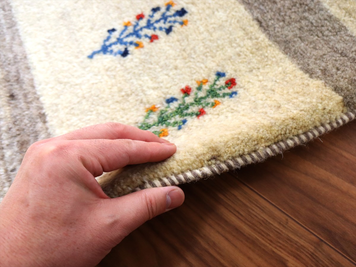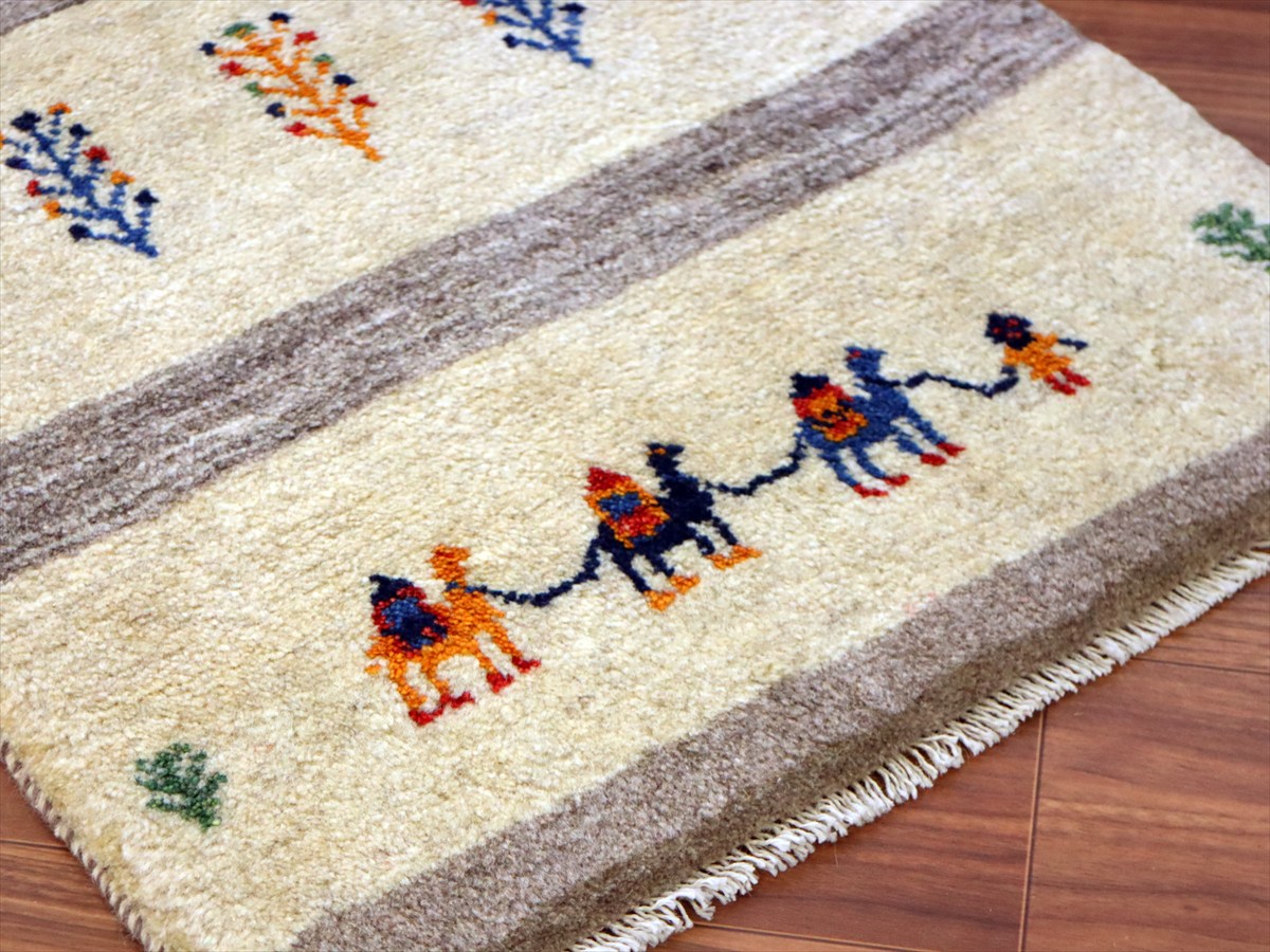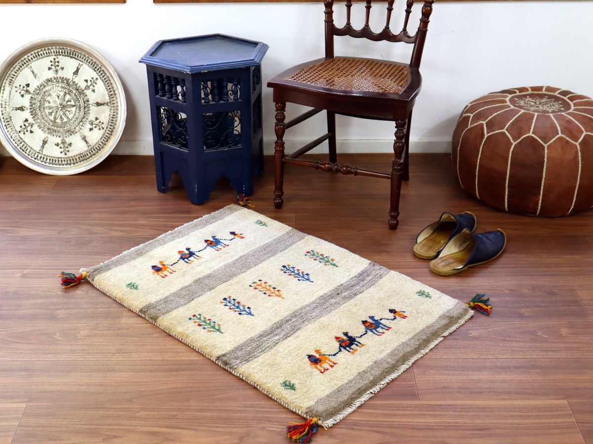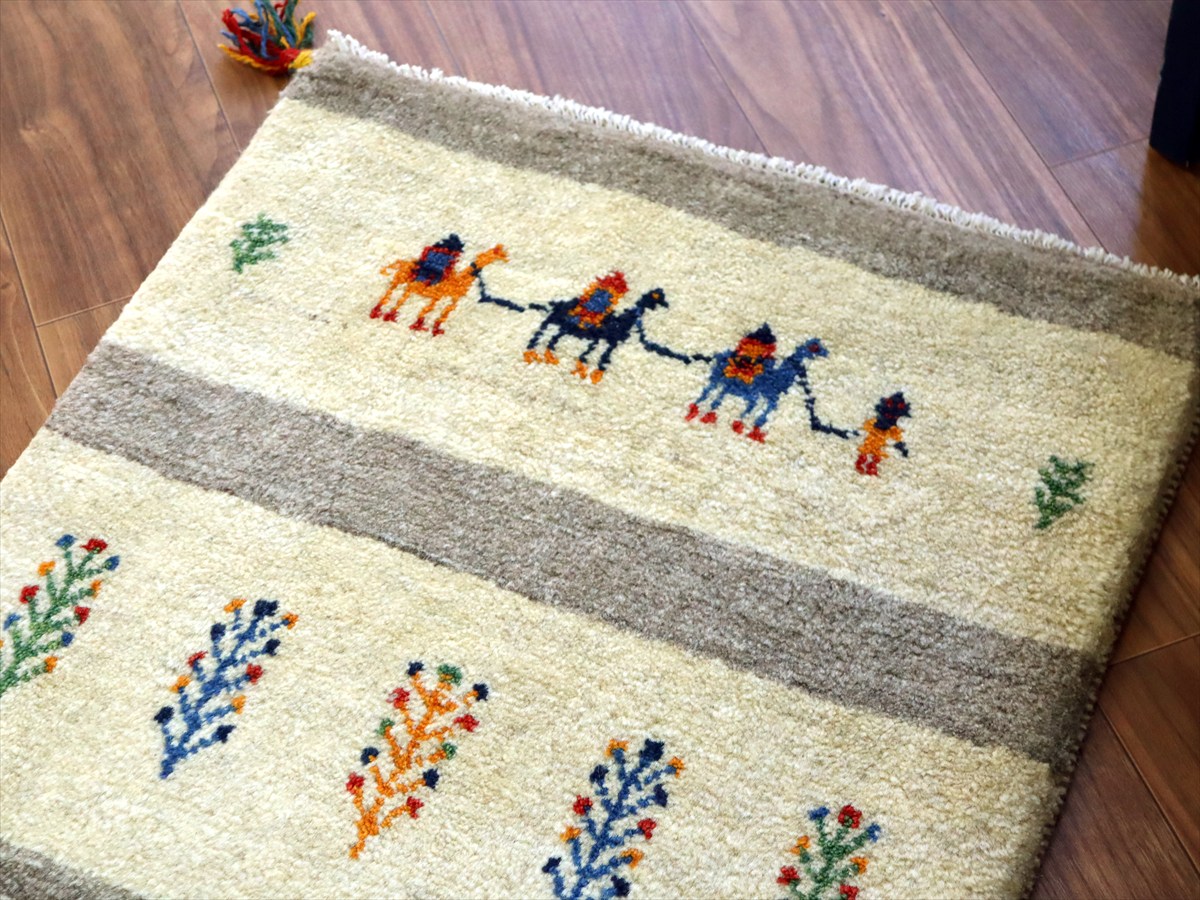 【15%OFF】ギャッベ イラン産手織り 90×62cm 玄関マット ナチュラルアイボリー ラクダのキャラバン