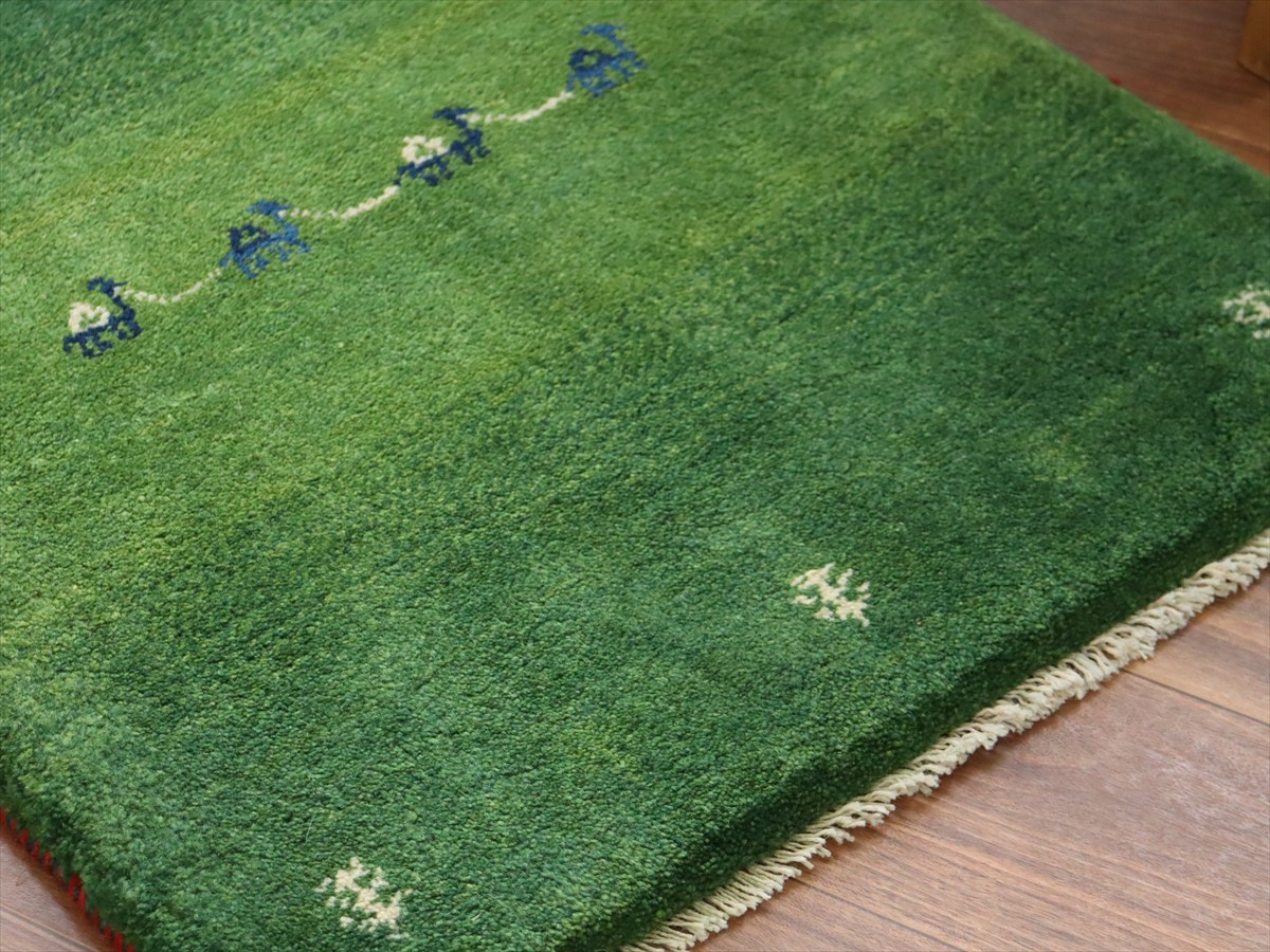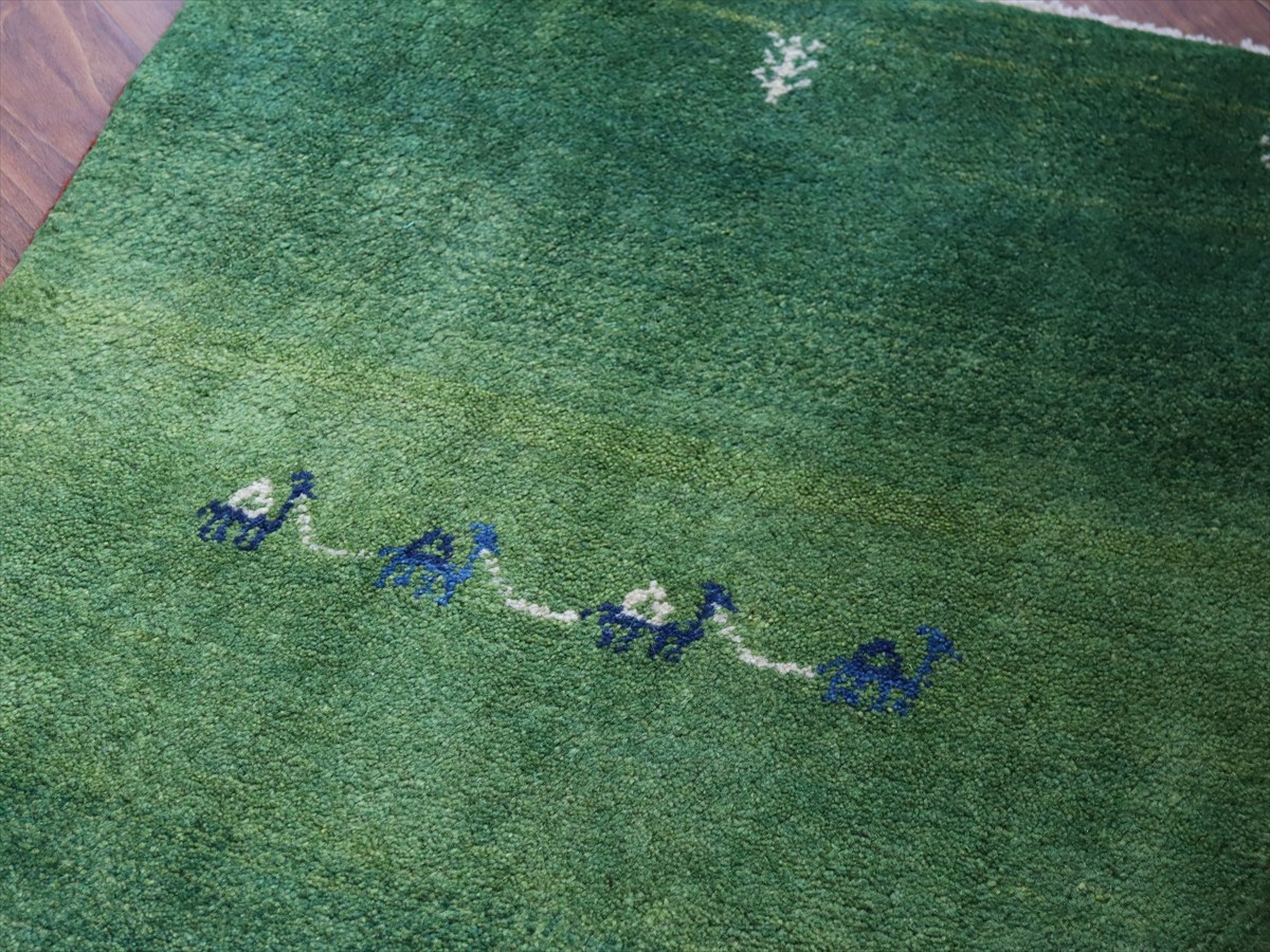- 【15%OFF】ギャッベ イラン産手織り 83×64cm 玄関マット グリーン ラクダのキャラバン