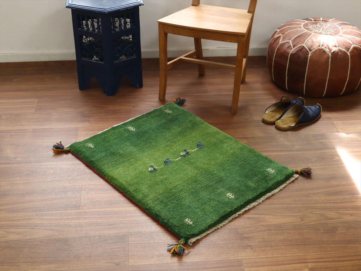 Key:ギャッベ, ギャベ, グリーン 緑 天然染料 草木染 ラグ, 絨毯, イラン, シラーズ, ペルシャ, バザールギャッベ, ポンポン, 手織り, 一点もの, 玄関マット, Gabbeh, Tribal rug, Shiraz, Fars, Iran, Persia, Wool, ふかふか, ガラタバザール