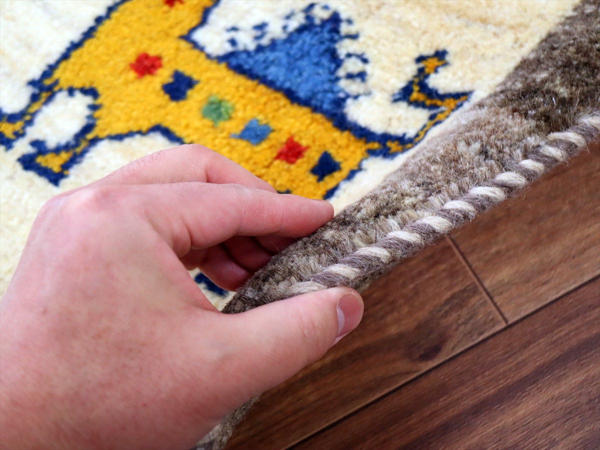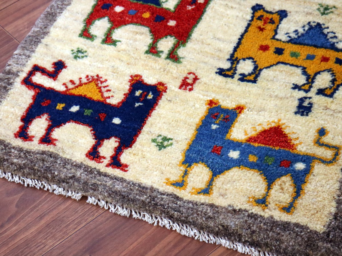 【15%OFF】ギャッベ イラン産手織り 92×62cm 玄関マット ナチュラルアイボリー カラフルなライオン