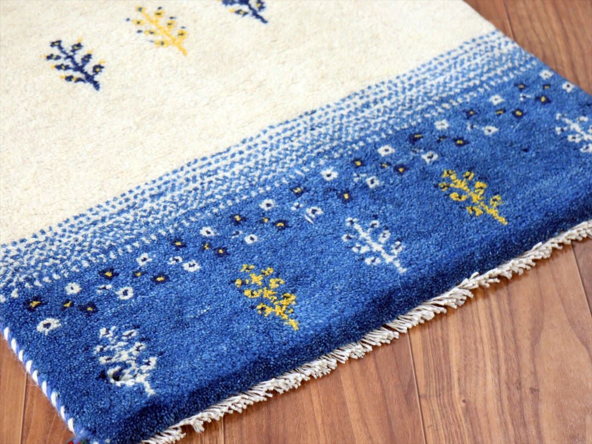 【15%OFF】ギャッベ イラン産手織り 87×59cm 玄関マット ナチュラルアイボリー&ブルー 生命の樹