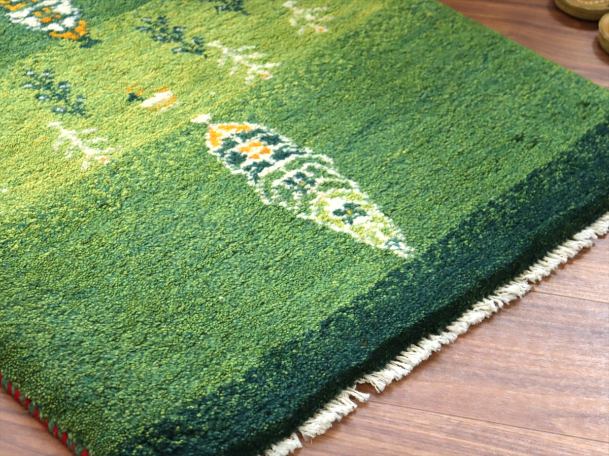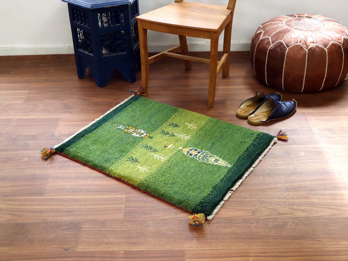 Key:ギャッベ, ギャベ, グリーン 緑 天然染料 草木染 ラグ, 絨毯, イラン, シラーズ, ペルシャ, バザールギャッベ, ポンポン, 手織り, 一点もの, 玄関マット, Gabbeh, Tribal rug, Shiraz, Fars, Iran, Persia, Wool, ふかふか, ガラタバザール