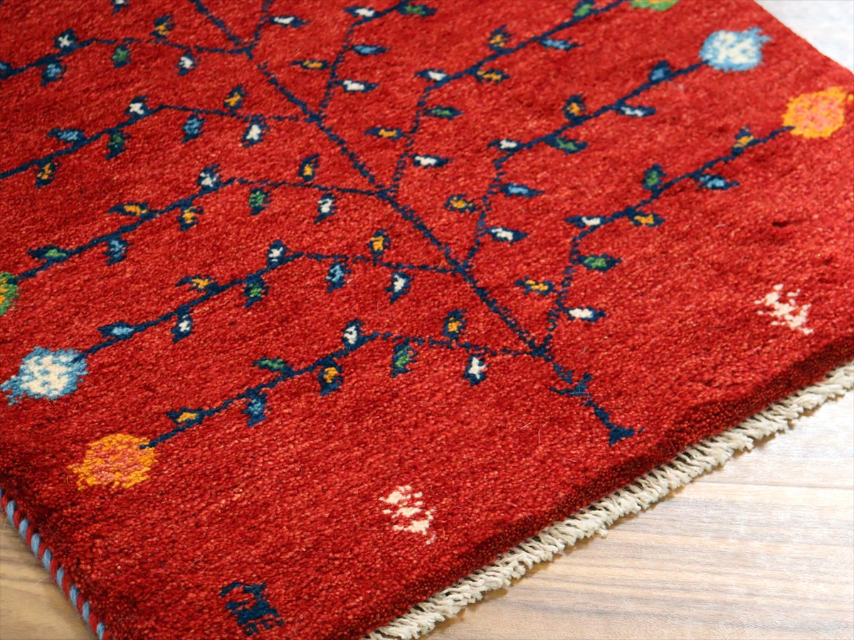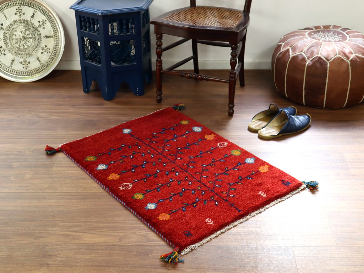 - 【15%OFF】ギャッベ イラン産手織り 87×62cm 玄関マット レッド 生命の樹とザクロ