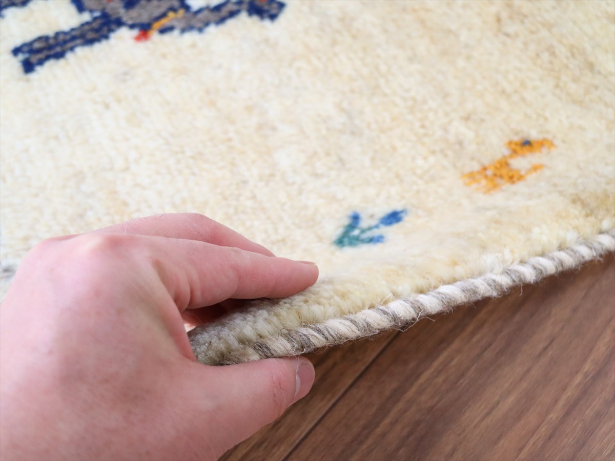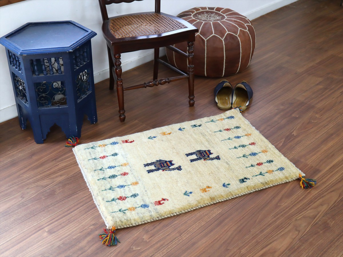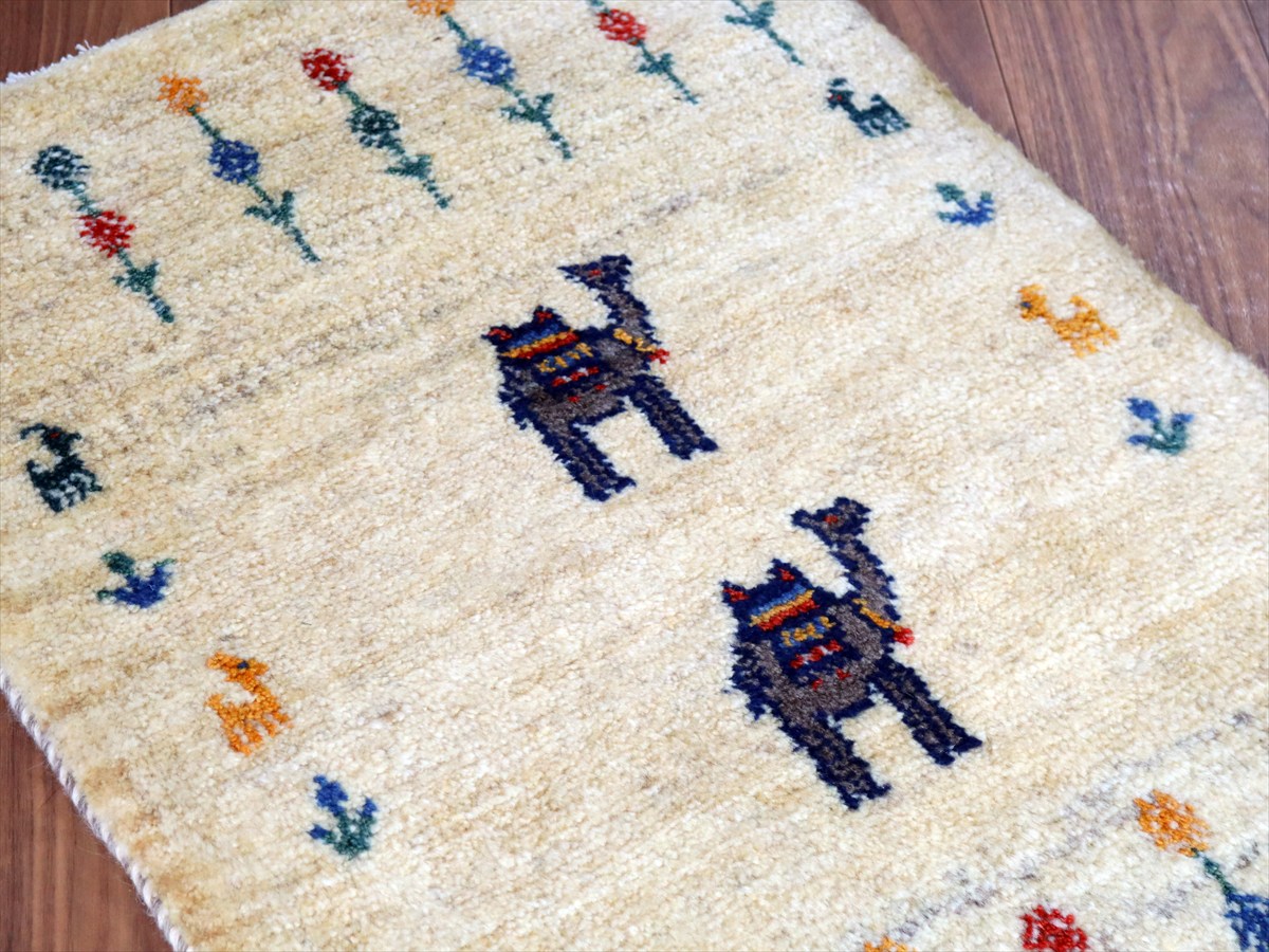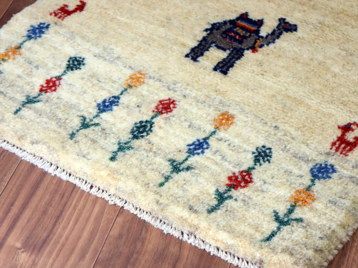 - 【15%OFF】ギャッベ イラン産手織り 89×61cm 玄関マット ナチュラルアイボリー ラクダとカラフルフラワー