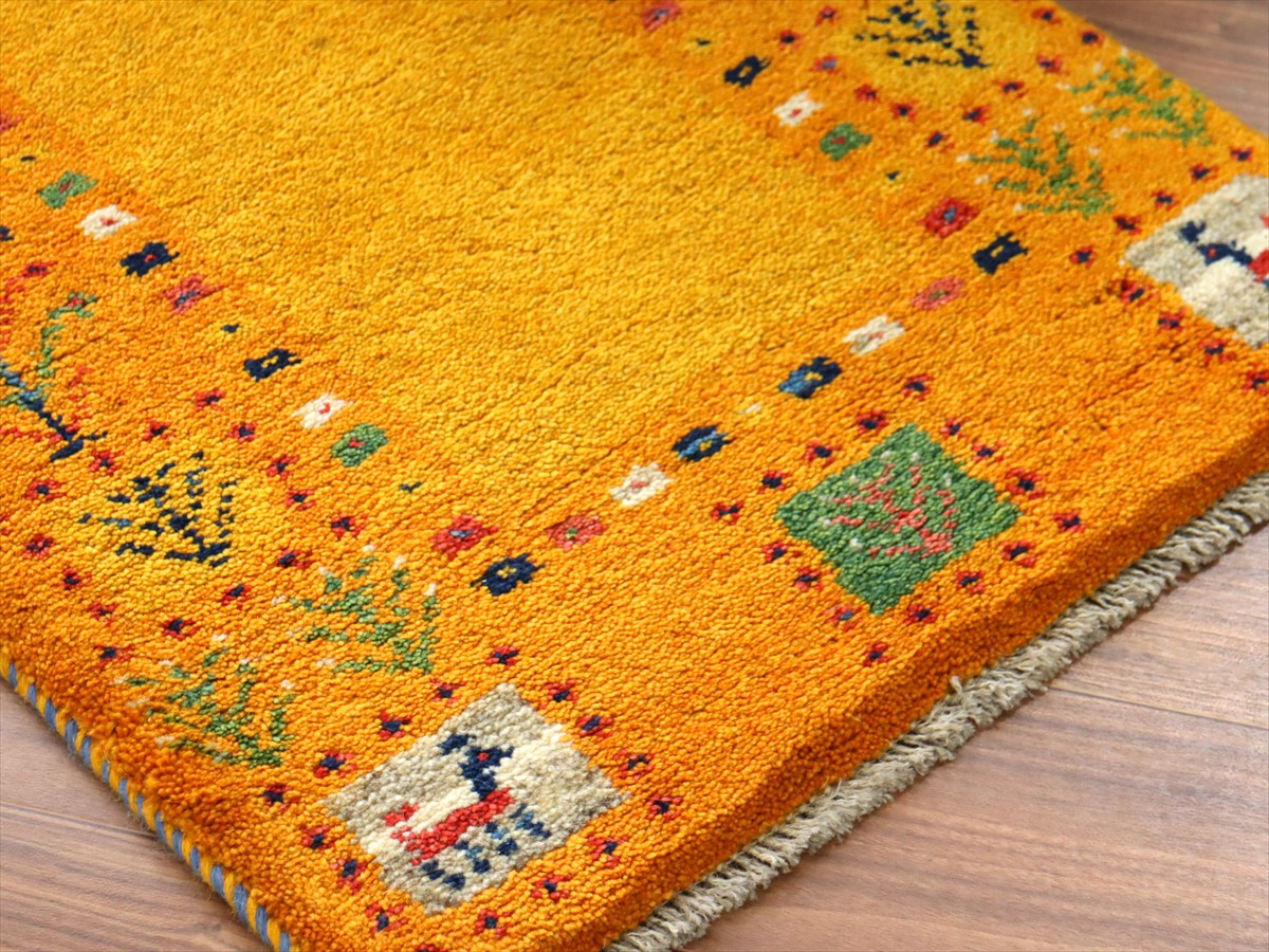 - 【15%OFF】ギャッベ イラン産手織り 89×59cm 玄関マット オレンジ イエロー 生命の樹と動物