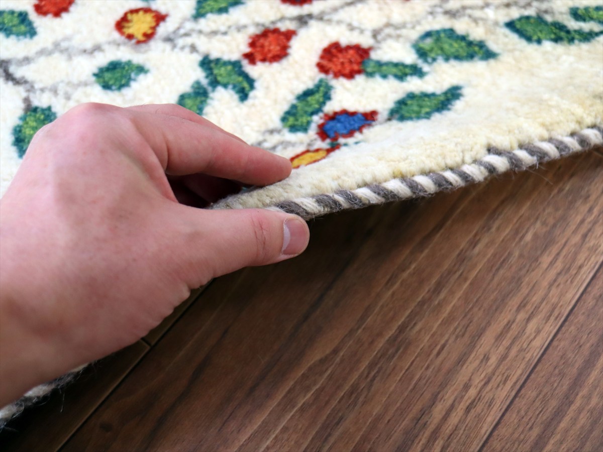【15%OFF】ギャッベ イラン産手織り 88×62cm 玄関マット ナチュラルアイボリー カラフルな生命の樹