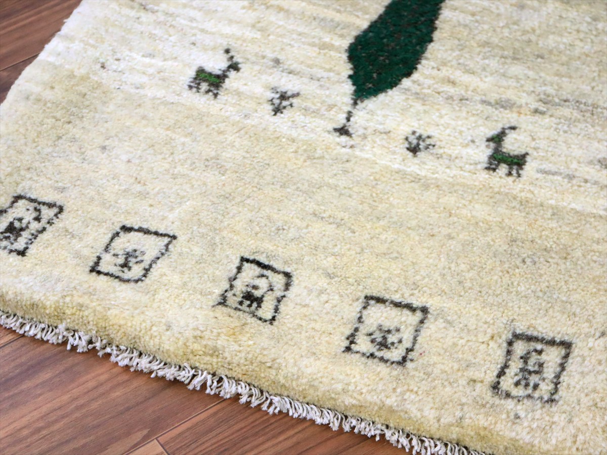 - 【15%OFF】ギャッベ イラン産手織り 85×65cm 玄関マット ナチュラルアイボリー 糸杉と動物モチーフ
