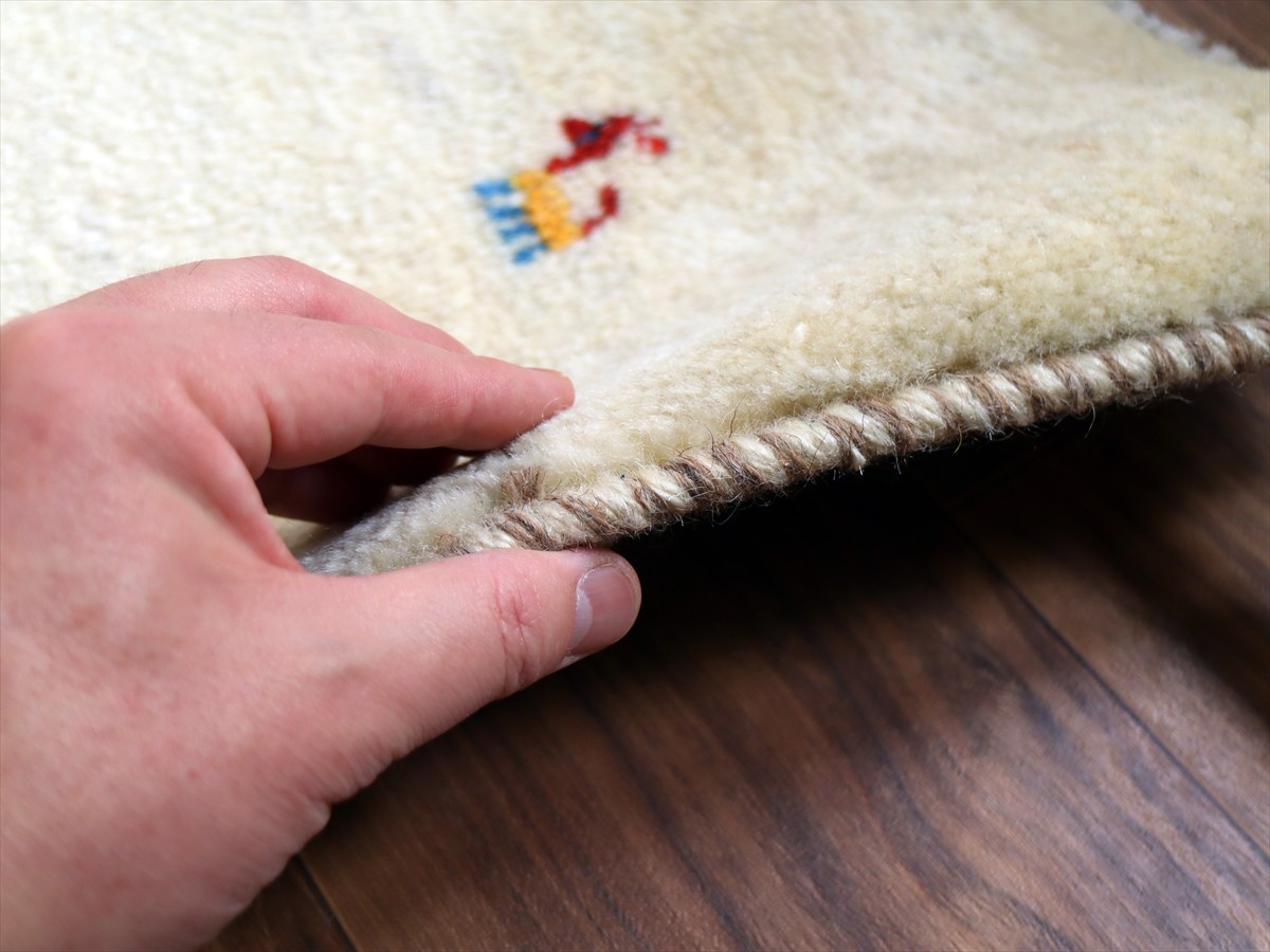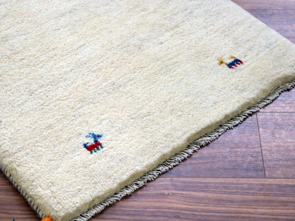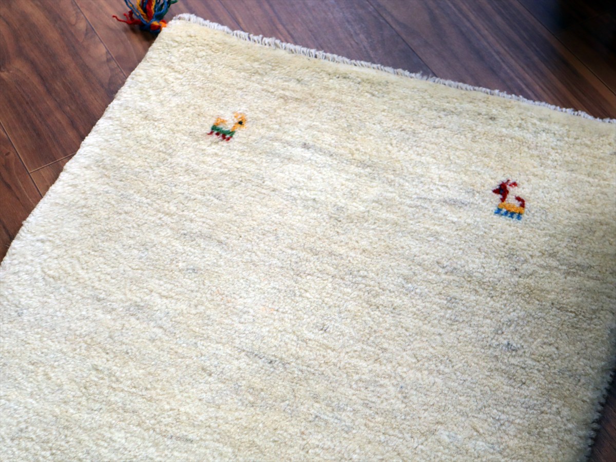 【15%OFF】ギャッベ イラン産手織り 84×63cm 玄関マット ナチュラルアイボリー 動物モチーフ