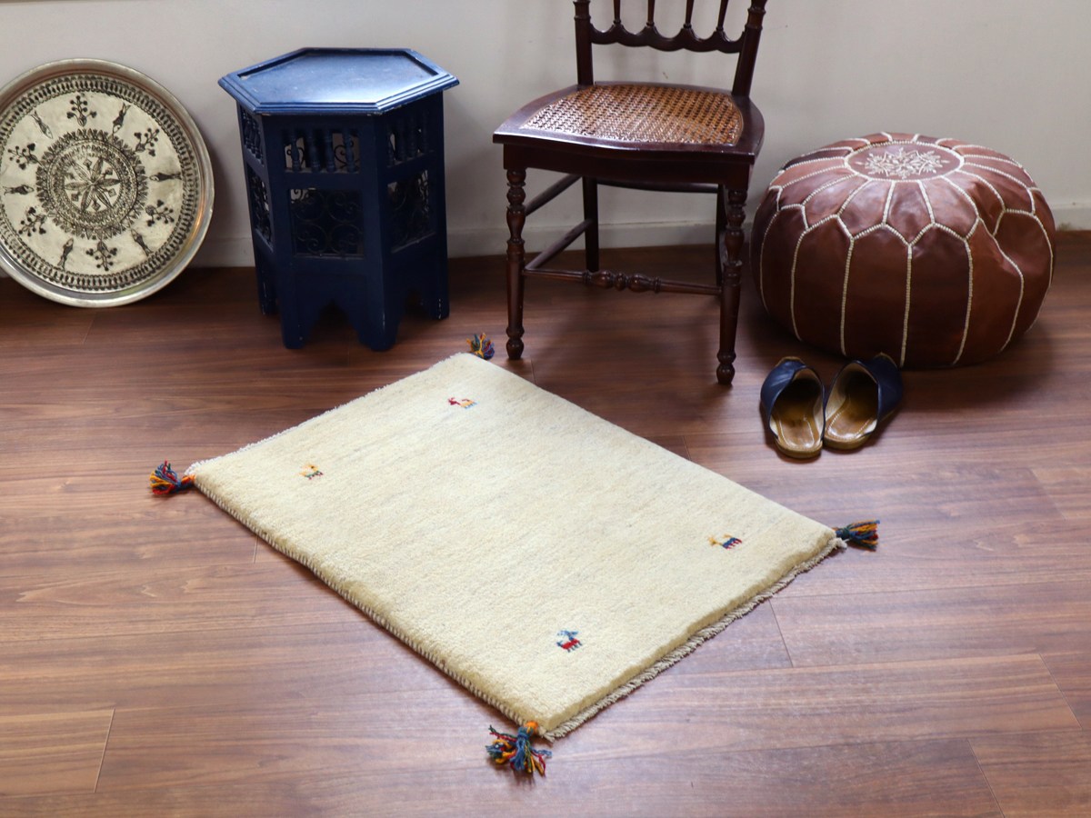 - 【15%OFF】ギャッベ イラン産手織り 84×63cm 玄関マット ナチュラルアイボリー 動物モチーフ